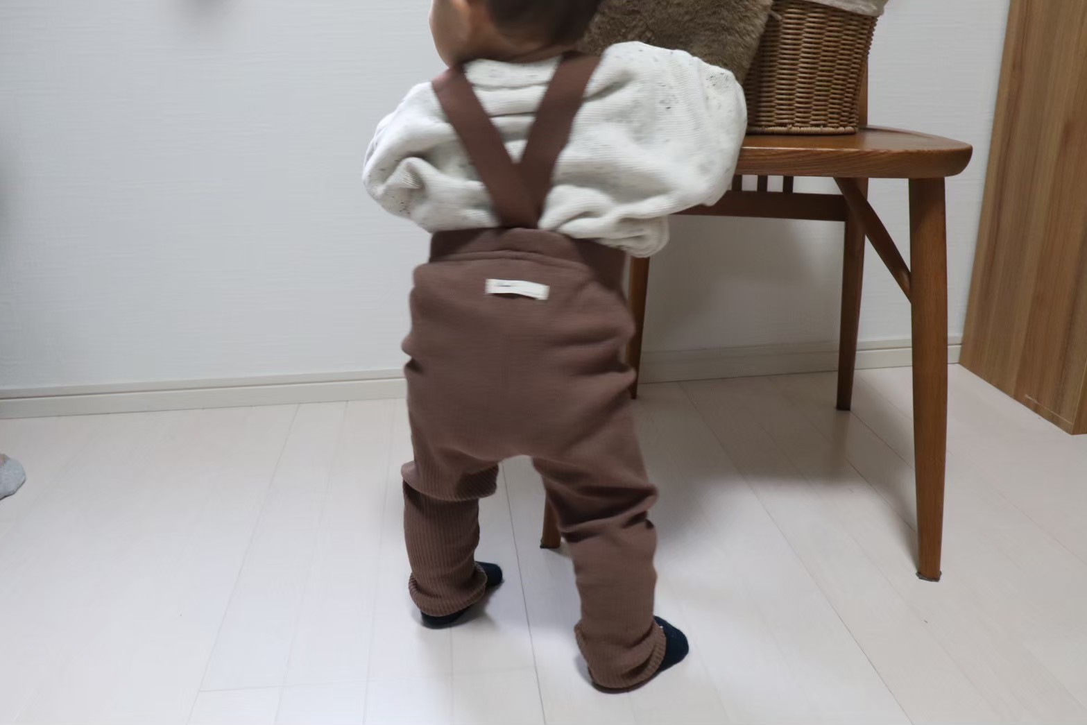 男女兼用のベビーサロペットです👶🏻🍼ブラウンとグレーの合わせやすい2色をご用意しました!お好きな色をお選びいただけます🤎🩶伸縮性もあるので、ハイハイやつかまり立ちなど動き始めたベビーにもぴったりです✨