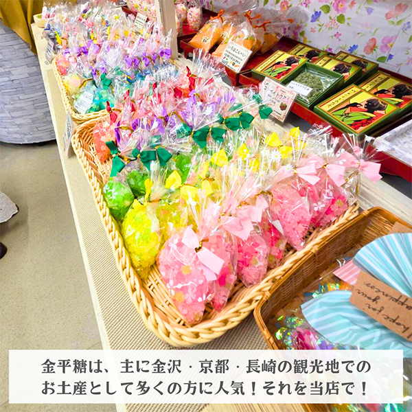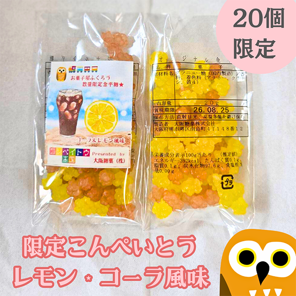 当店だけでしか手に入らないコーラとレモン風味の金平糖!