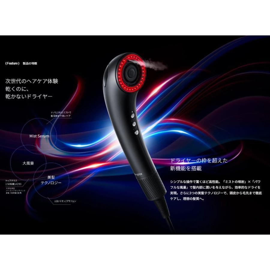 シンプルな操作で驚くほど高性能。「ミストの噴射」×「パワフルな風量」で髪内部に潤いを与えながら、効率的なドライを実現。