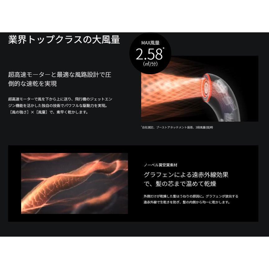 風をさらにブーストさせることで風が広がり髪の毛がより効率的に乾く。