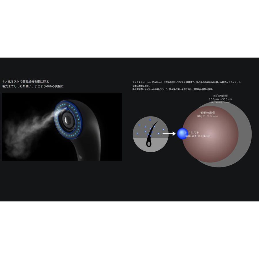 ナノミストは、1μm(0.001mm)以下の粒子サイズにした美容液で、髪の毛の約80分の1の微小な粒子がドライヤーから髪に浸透します。