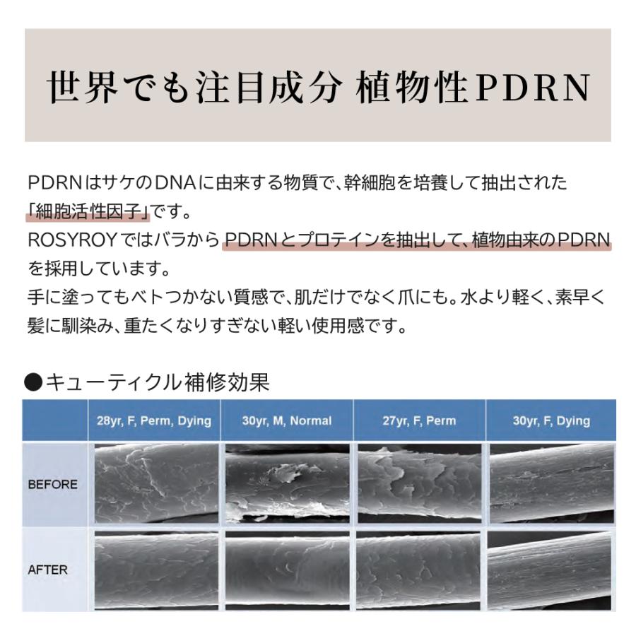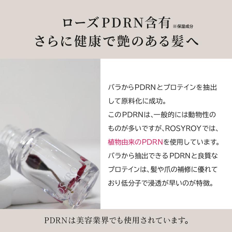 バラから抽出した“ROSE PDRN”と“自然由来のオイル成分”で髪のダメージを優しく補修。