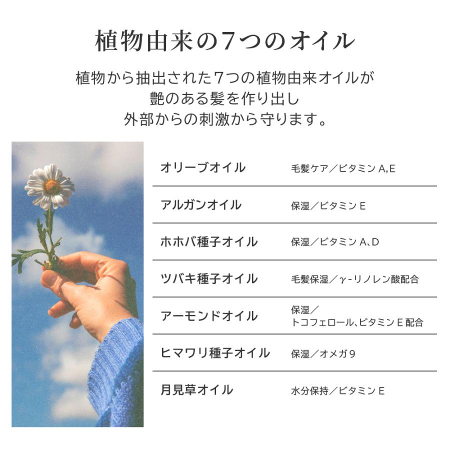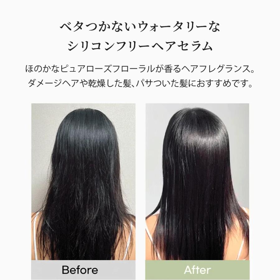 水より軽く、素早く髪に馴染み重たくなりすぎない軽い使用感で、髪と肌にツヤを与えます。