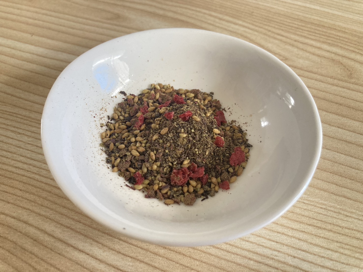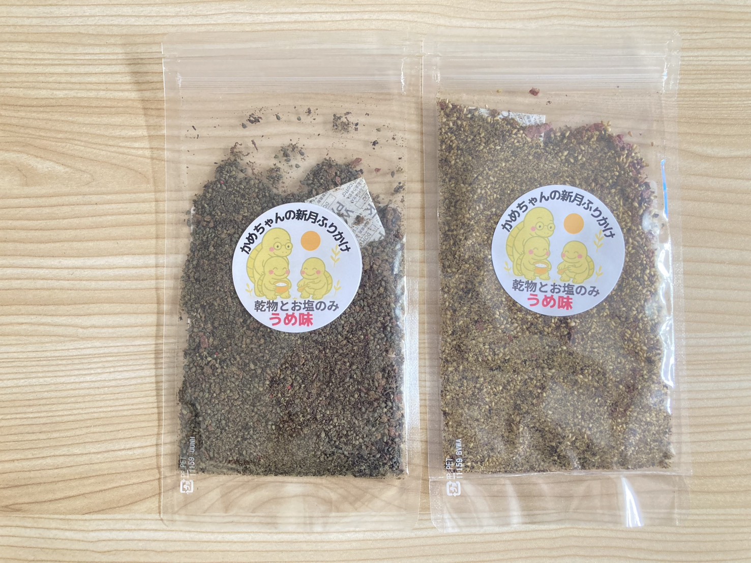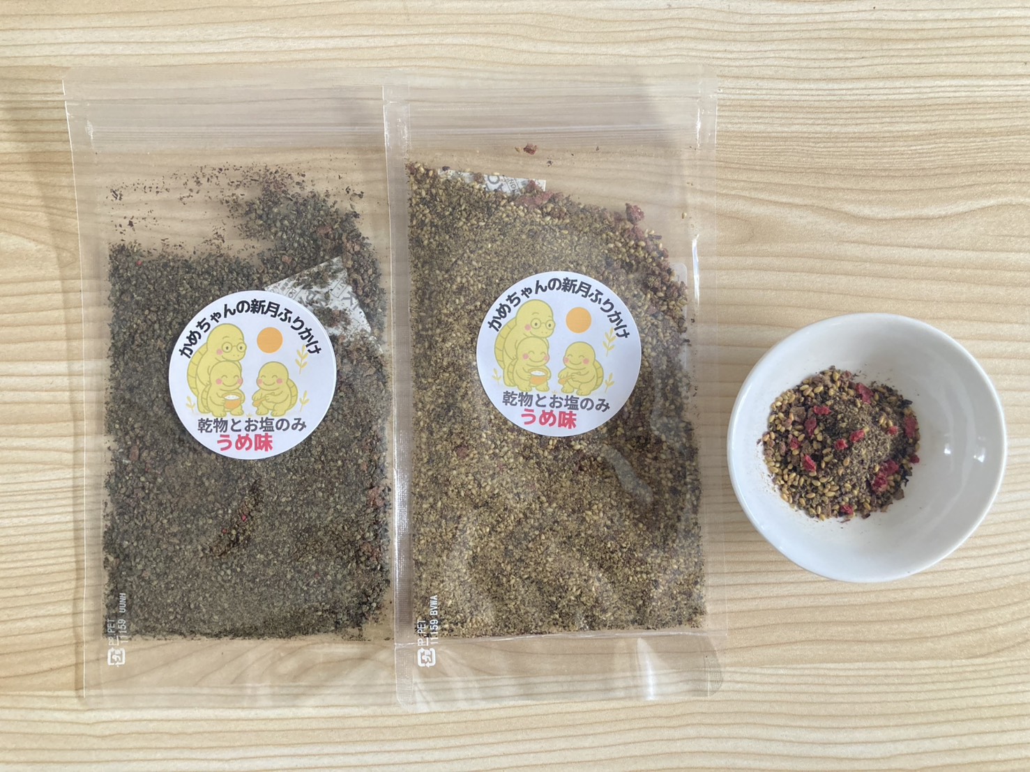 有機白ごま、有機の黒ごま、フリーズドライ梅干し(梅肉(和歌山県産)、塩、しそ)、しその葉ふりかけ(しそ(国産)、梅酢(梅、しそ、塩)、塩)