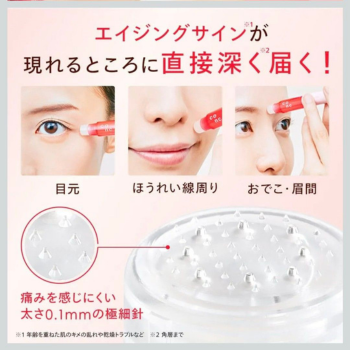 ■尾部をノックするとマイクロニードルから美容液がプシュッと出てきて肌の奥に直接注入!