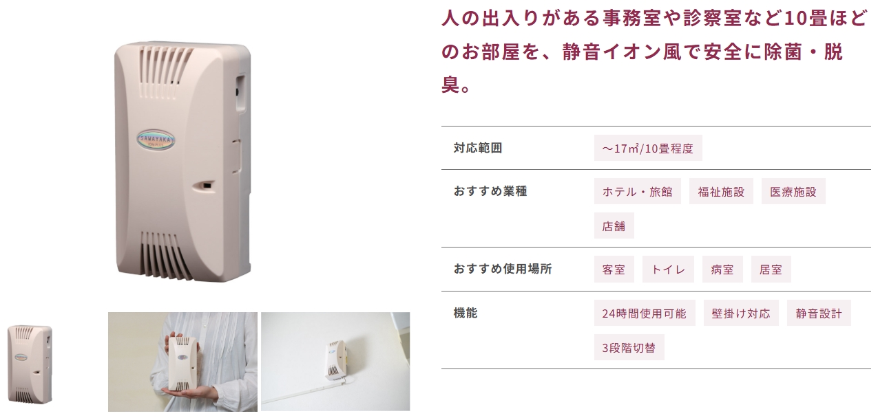 人の出入りのがある事務所や診察室など10畳ほどのお部屋を清音イオン風で安全に除菌・脱臭 さわやかイオンプラス
