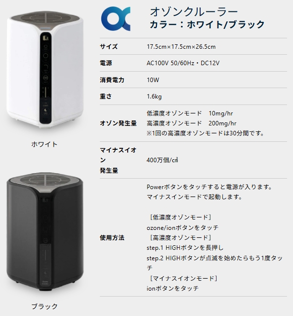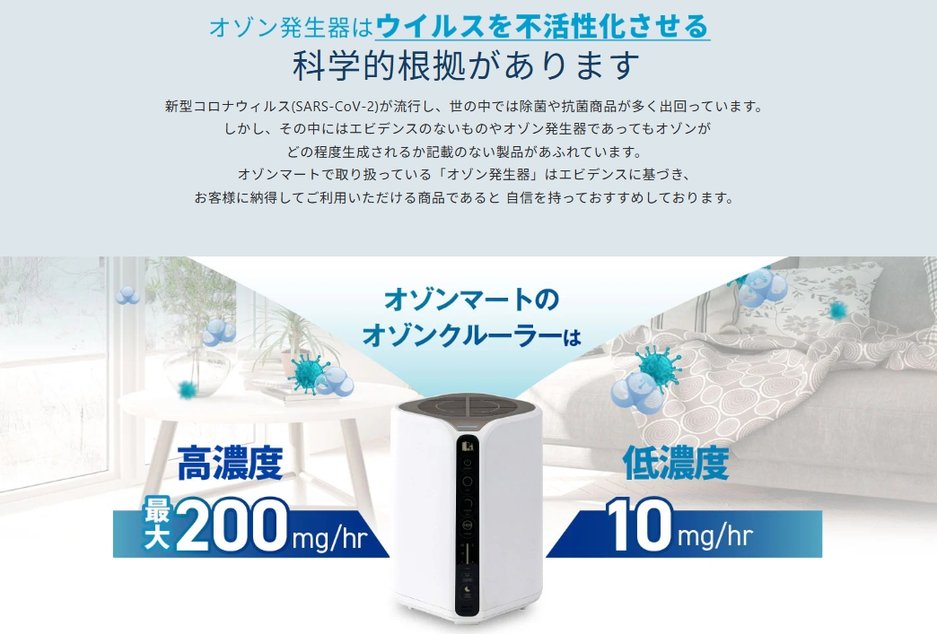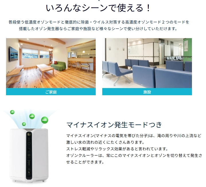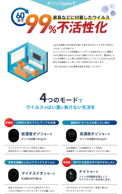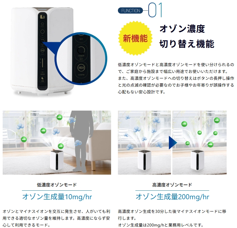 人がいる場所でもいない場所でもウィルス対策できる高機能オゾン発生器