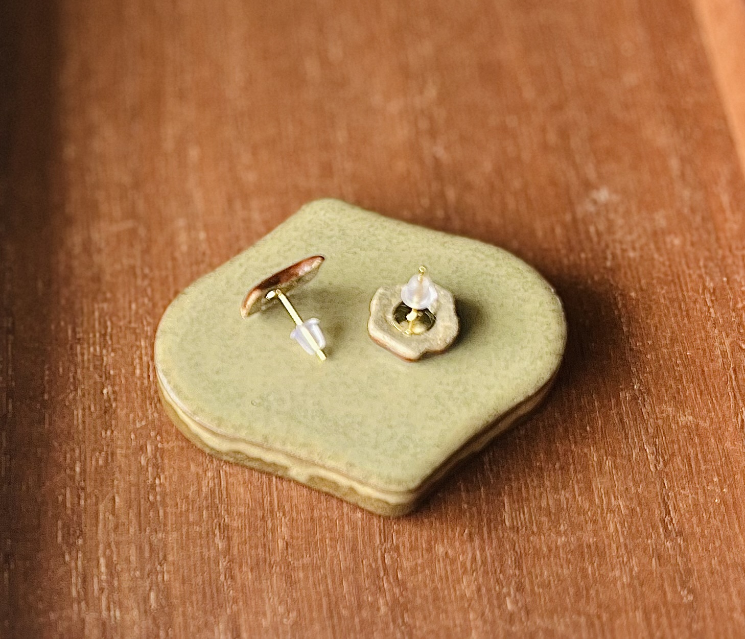 石州瓦のやきもの 猫のピアス(茶)