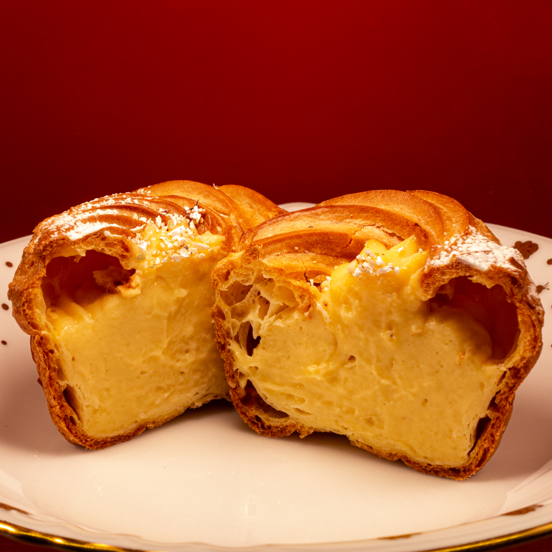 米粉だけでつくるカスタードはどこか淡白なお味…ということで、当店舗のある調布の名所「深大寺」にちなんで、深大寺そばと同じ蕎麦粉を使用して、クリームにコクととろみを生み出しています。