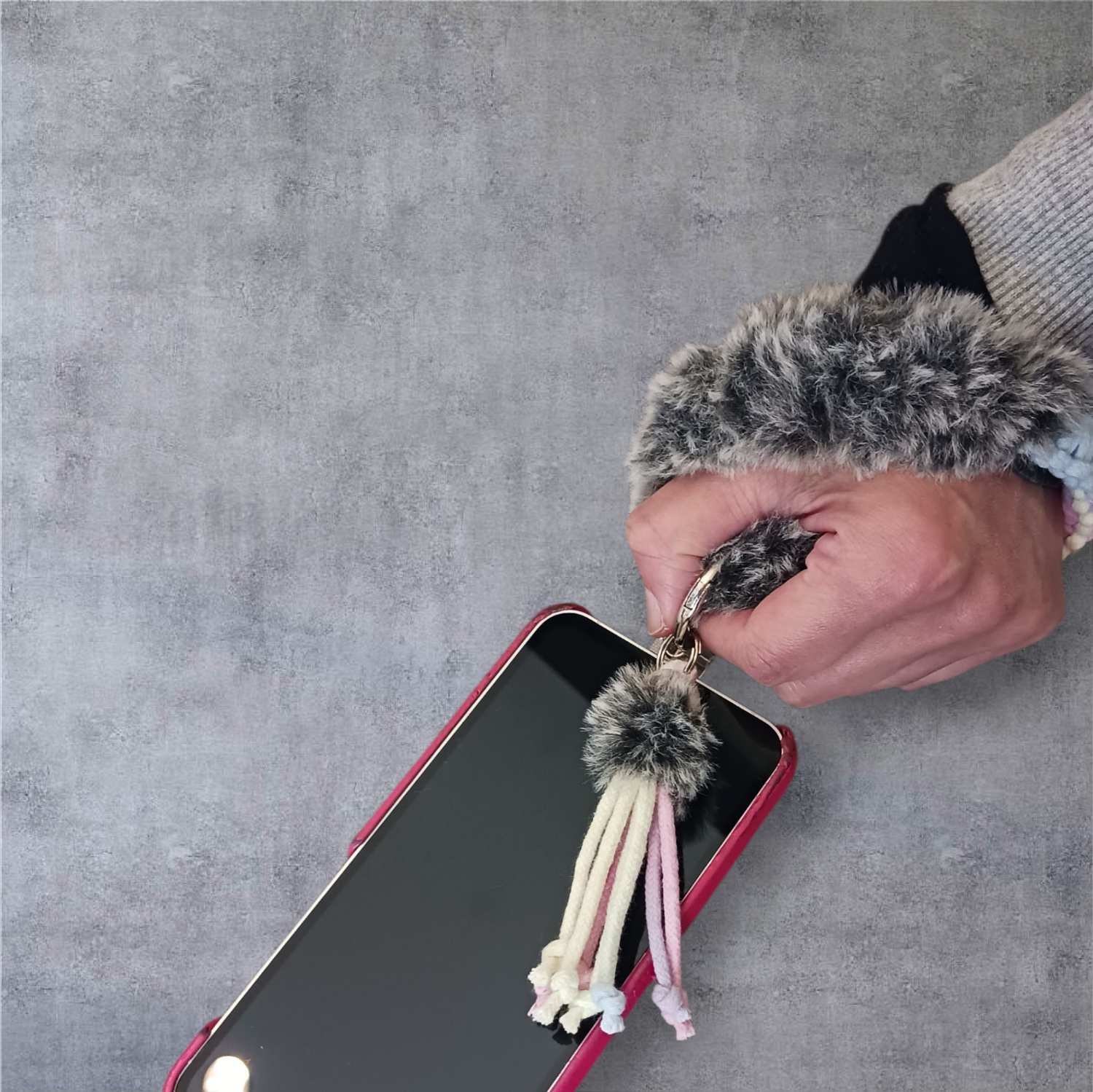 手首にふんわりフィットするフェイクファーと、