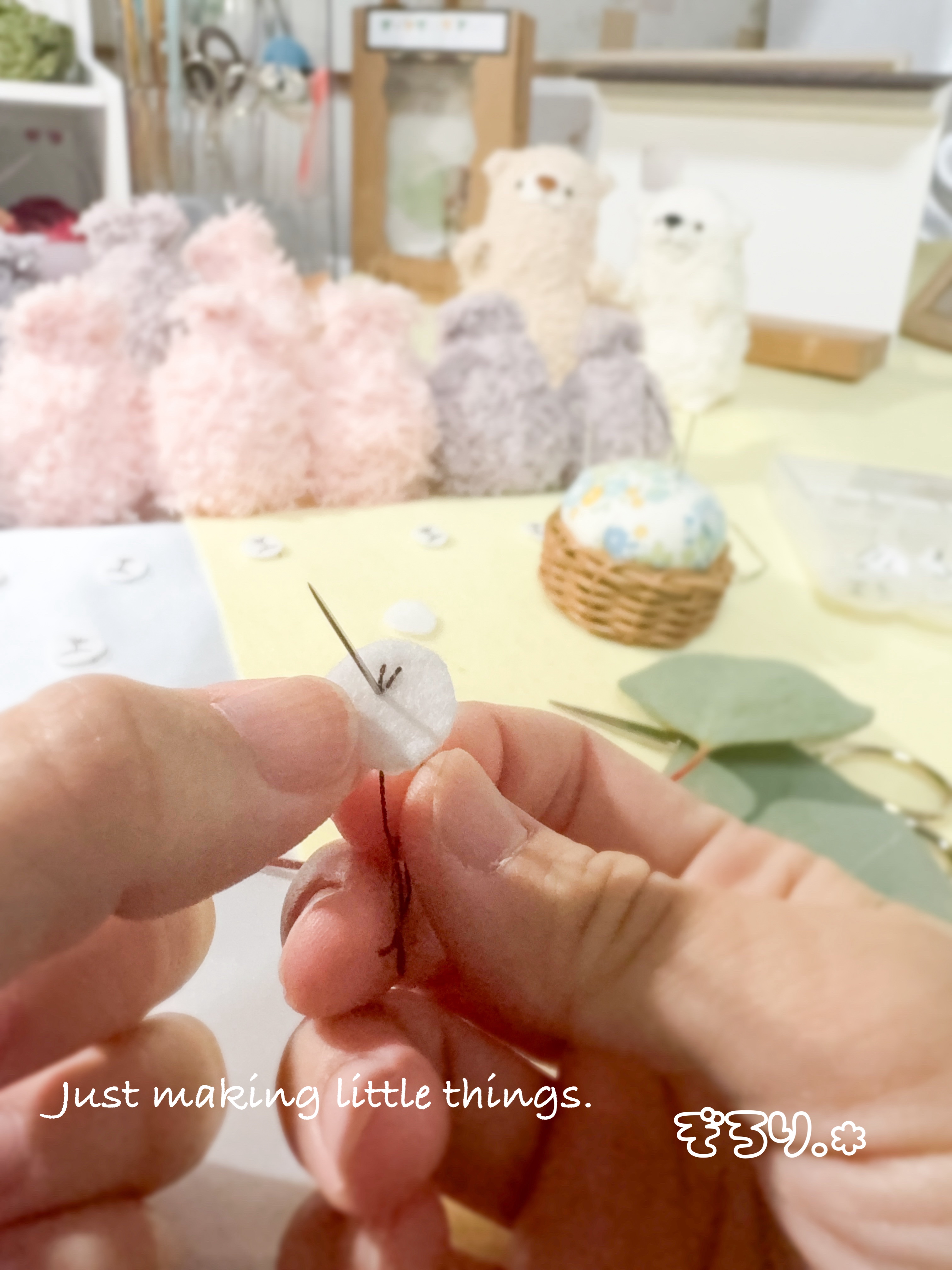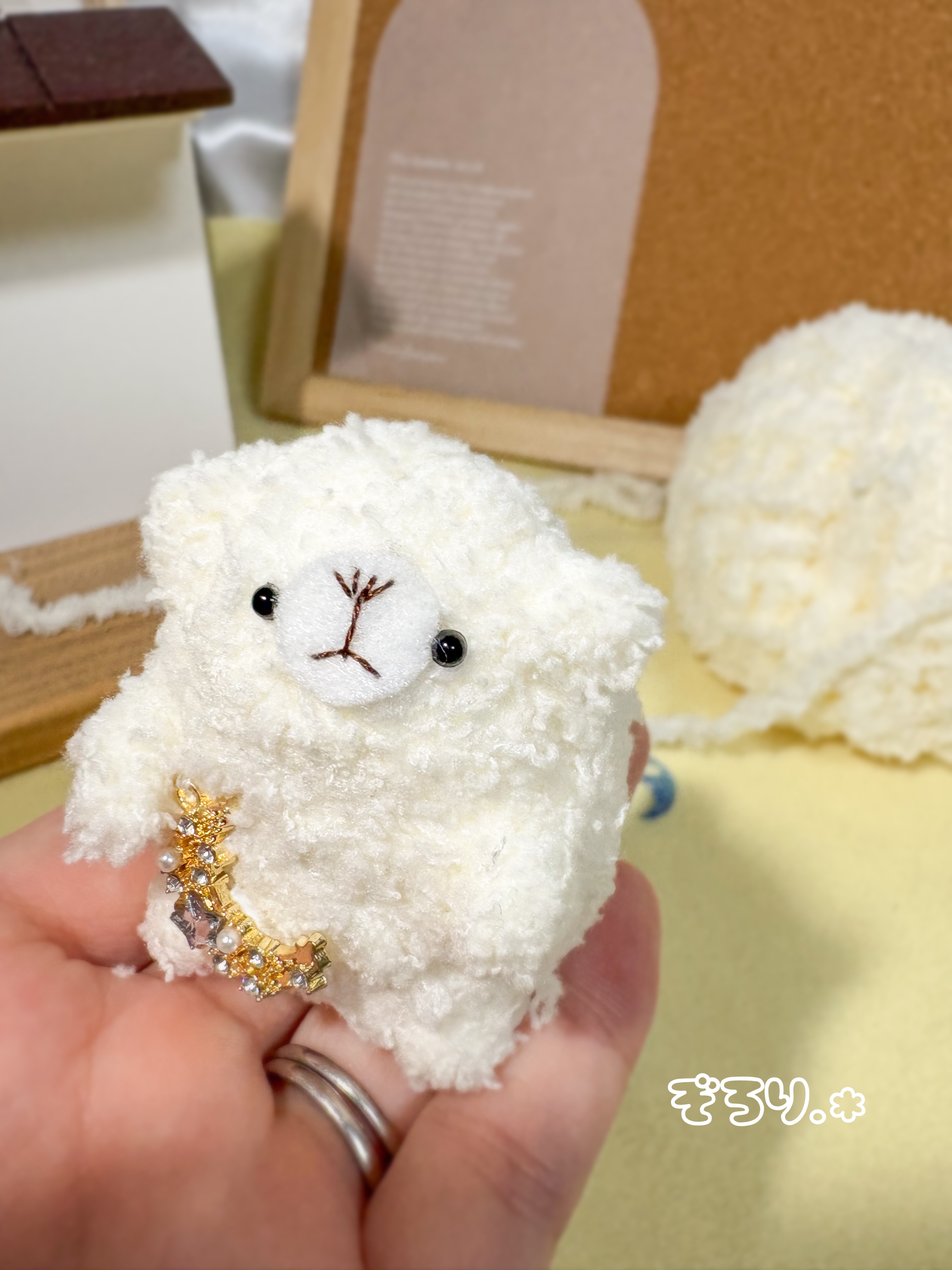 素材:もこもこ毛糸/フェルト/ビーズチャーム/刺繍糸
