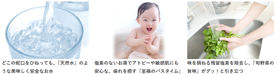 家の保守・延命 ※酸化速度を急速に下げ、配管やガス給湯器・エコキュート・電気温水器・灯油ボイラーなどの給水設備を守り、家の水廻りの保守・延命になります。 ![]() | |||||