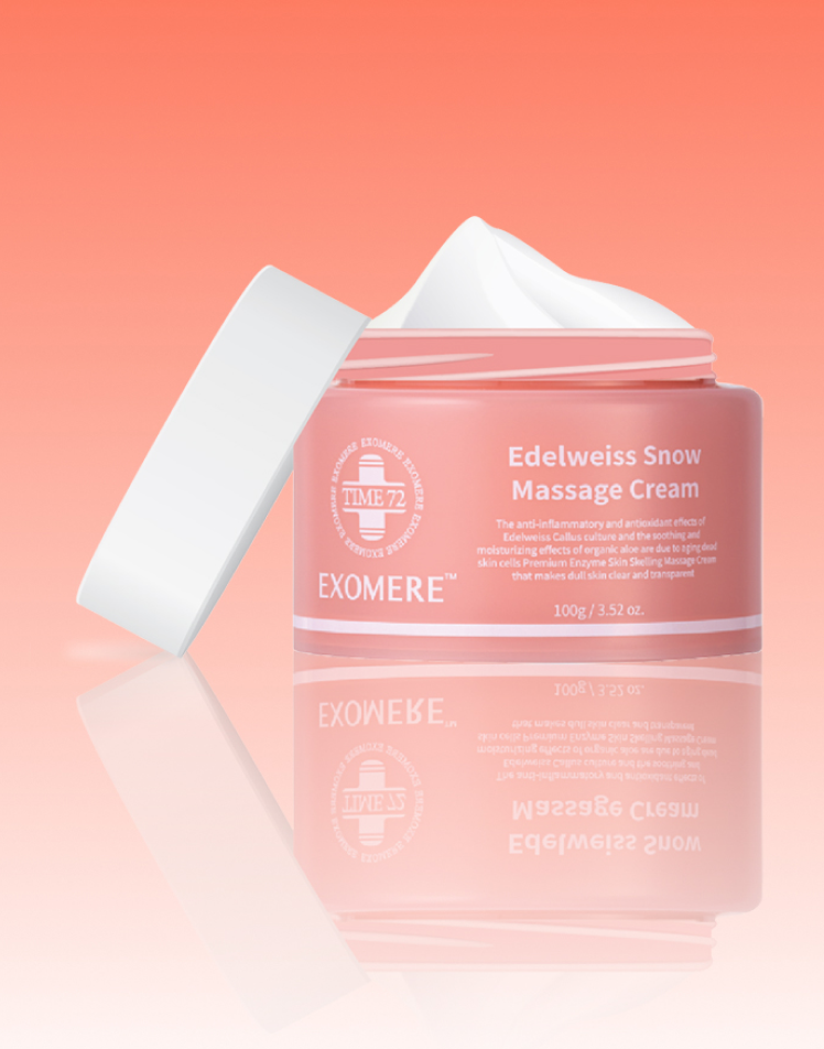 ハンラボン・エクソソームとエーデルワイス幹細胞培養液を掛け合わせたマッサージクリーム。肌表面の古い角質を柔らかくほぐしながら吸着し、ゴワつきを抑えて滑らかな質感へ導きます。
