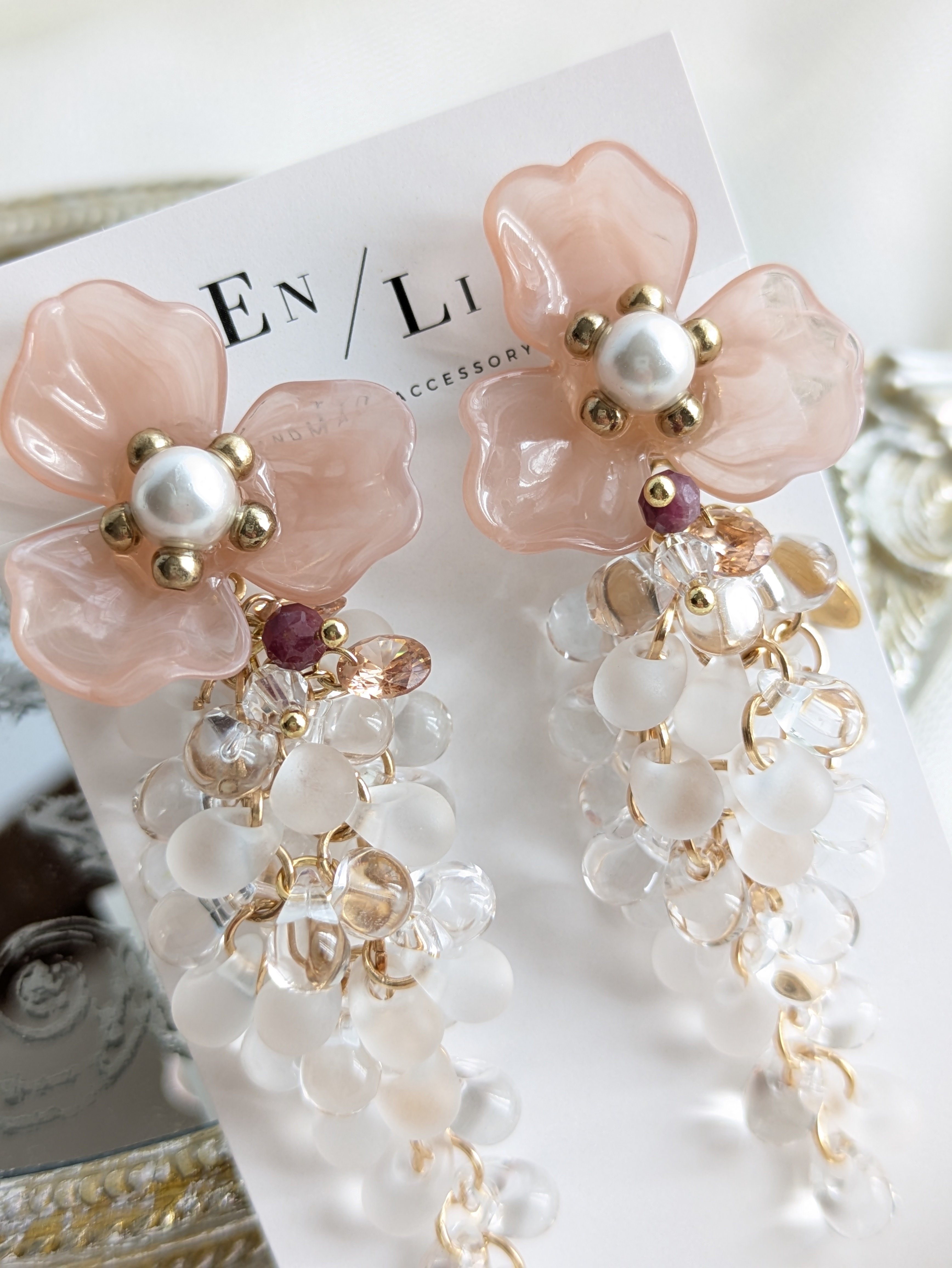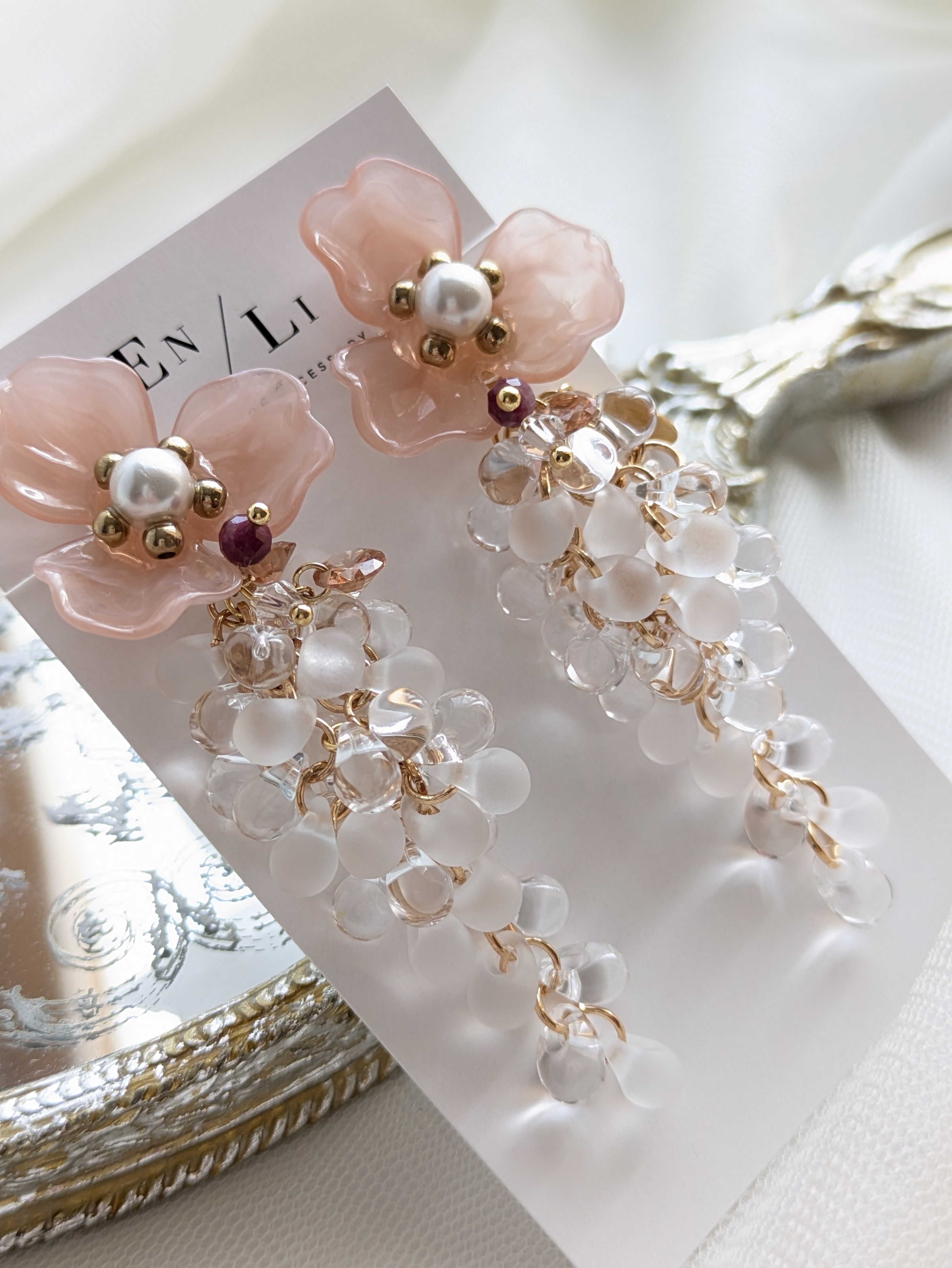 透明感のある花モチーフは、繊細さと清らかさを