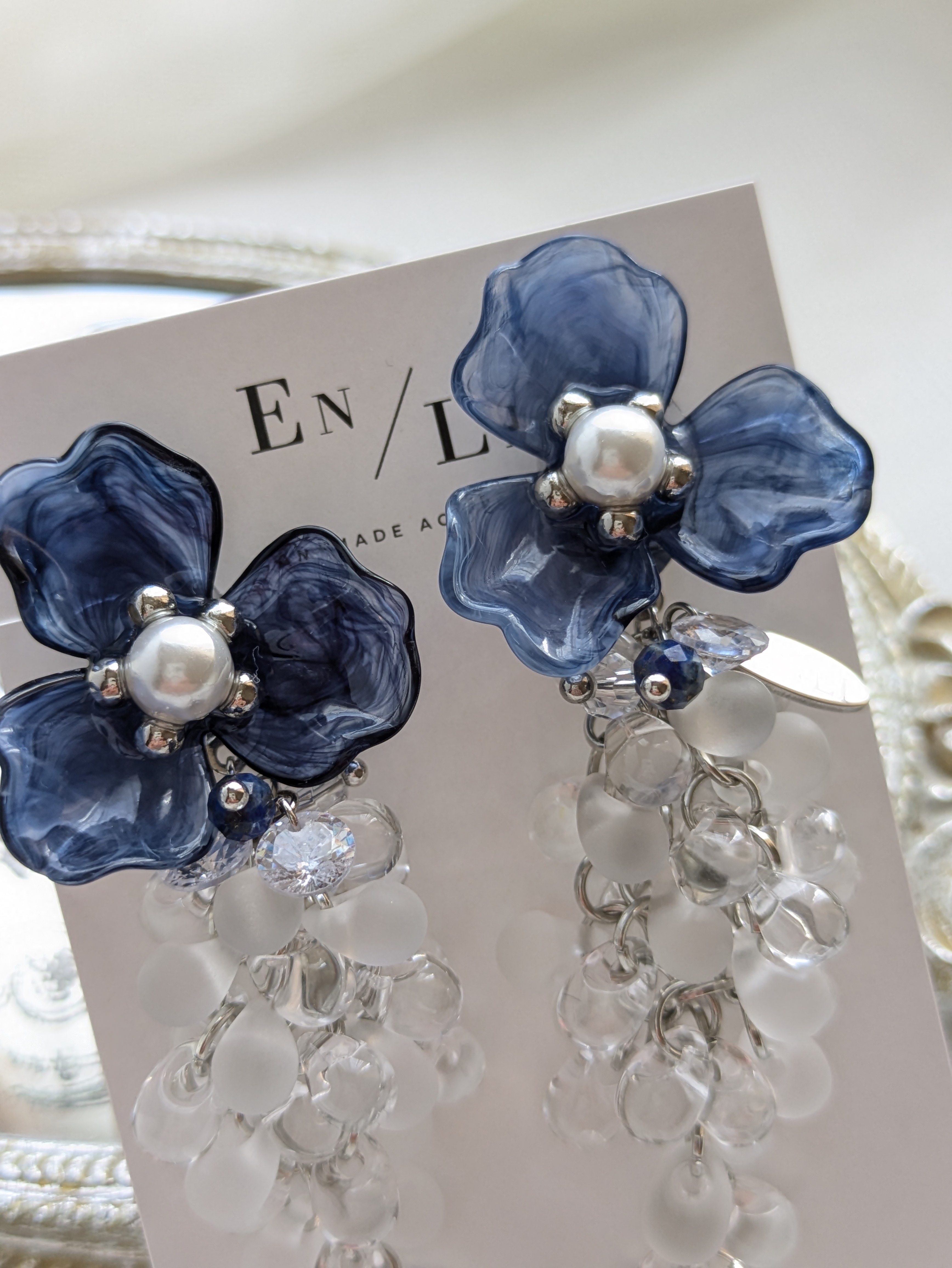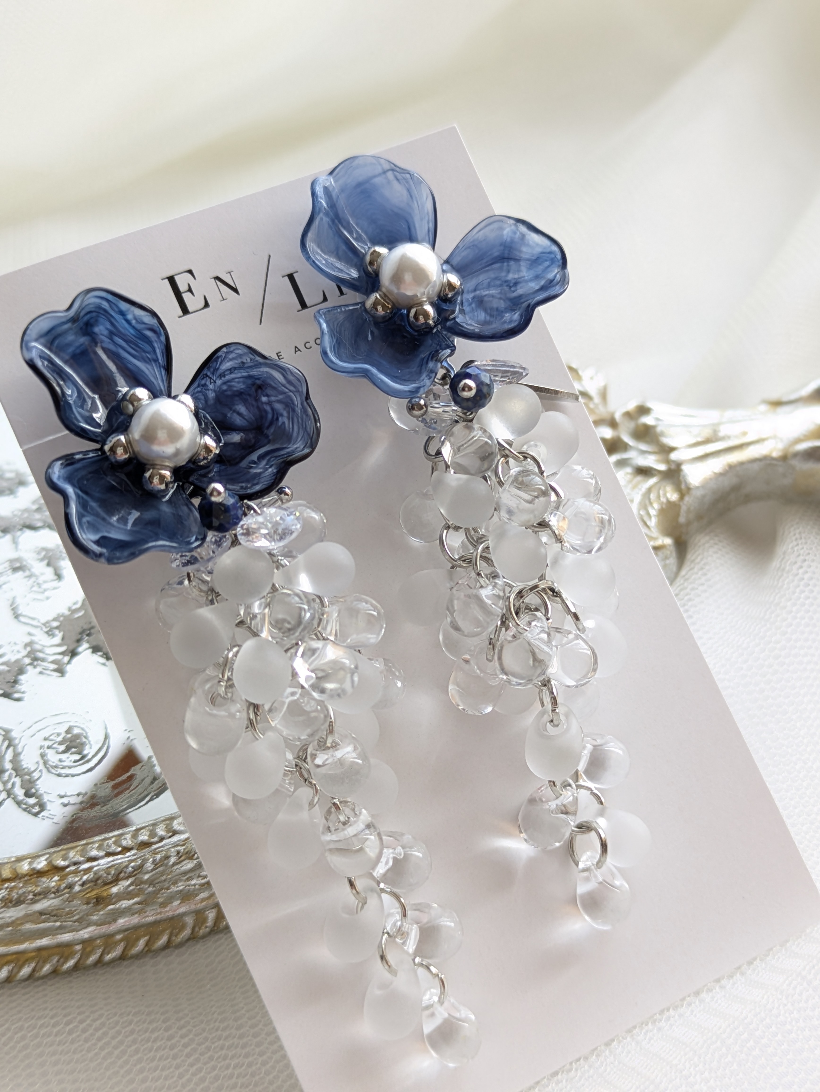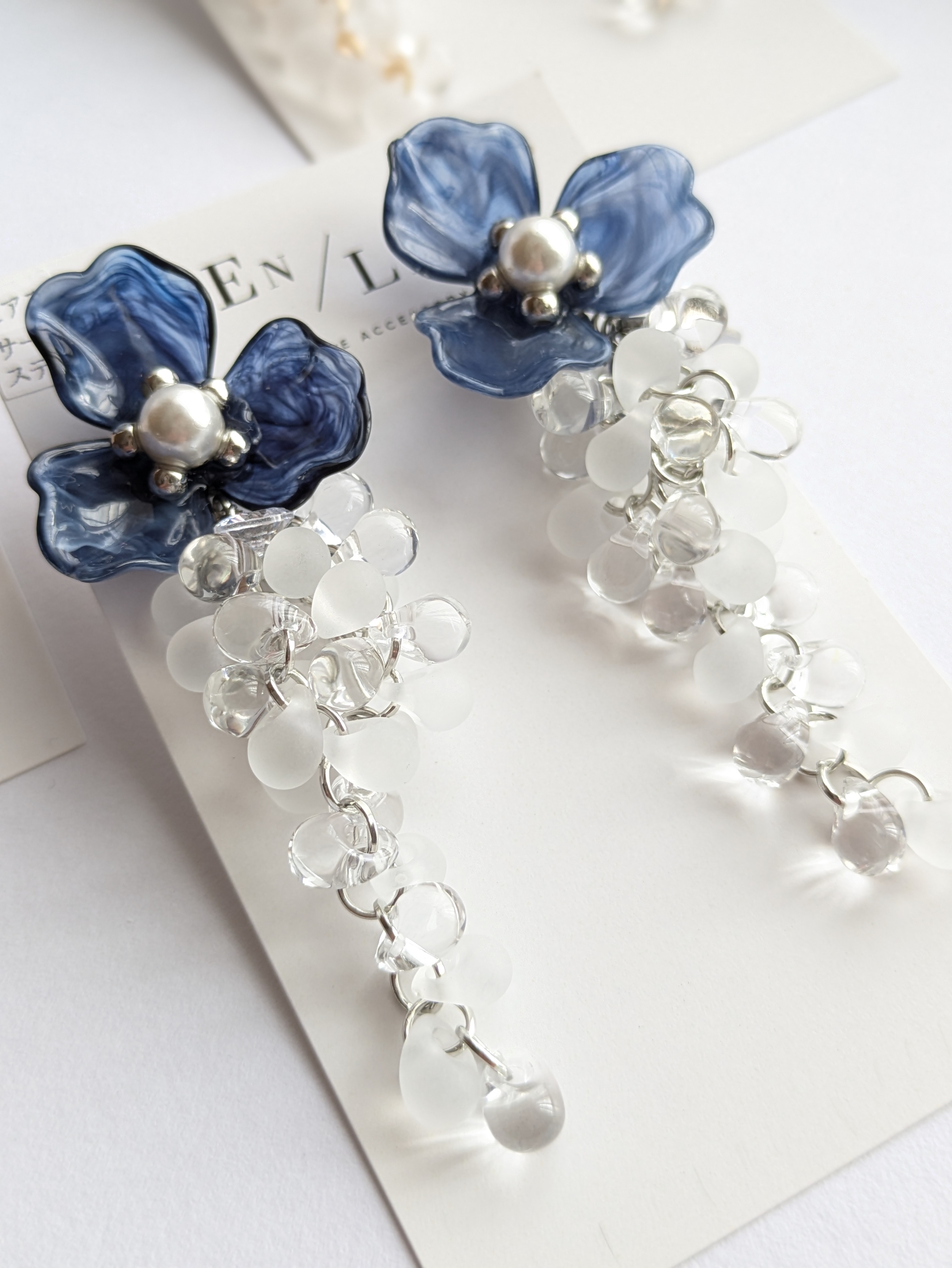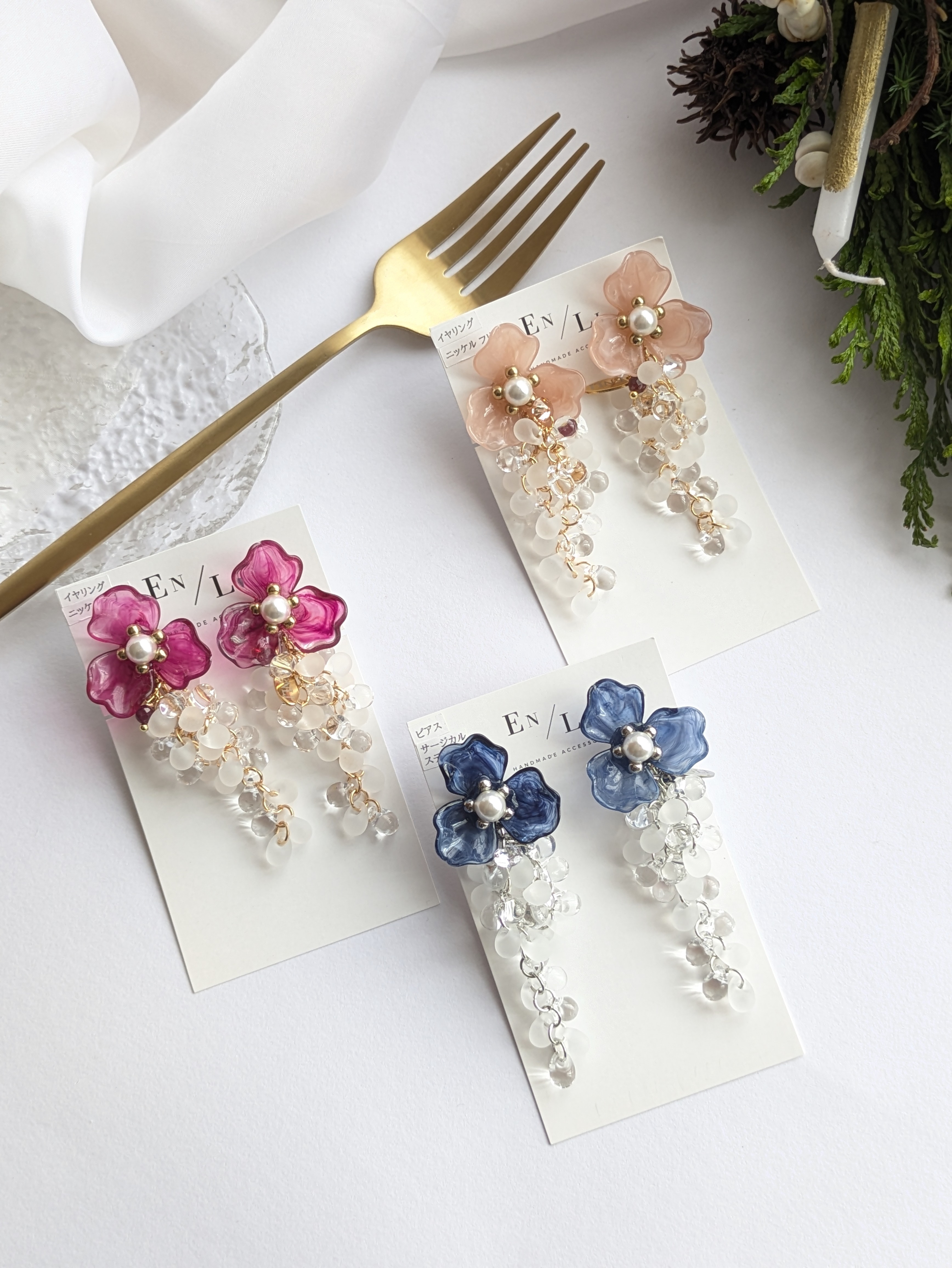 クリアビーズが光の角度によって美しい輝きを見せ、
