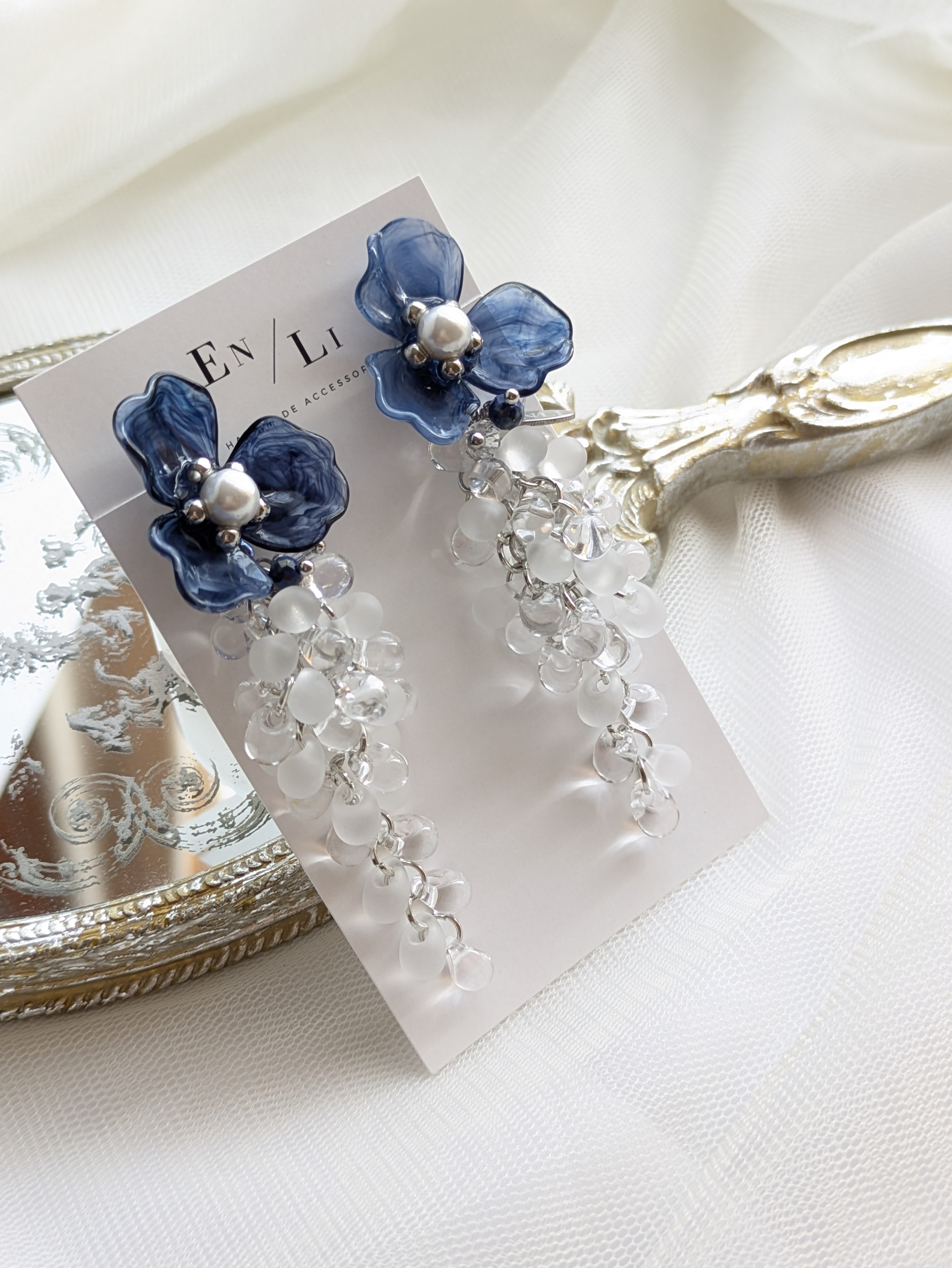 透明感のある花モチーフは、繊細さと清らかさを