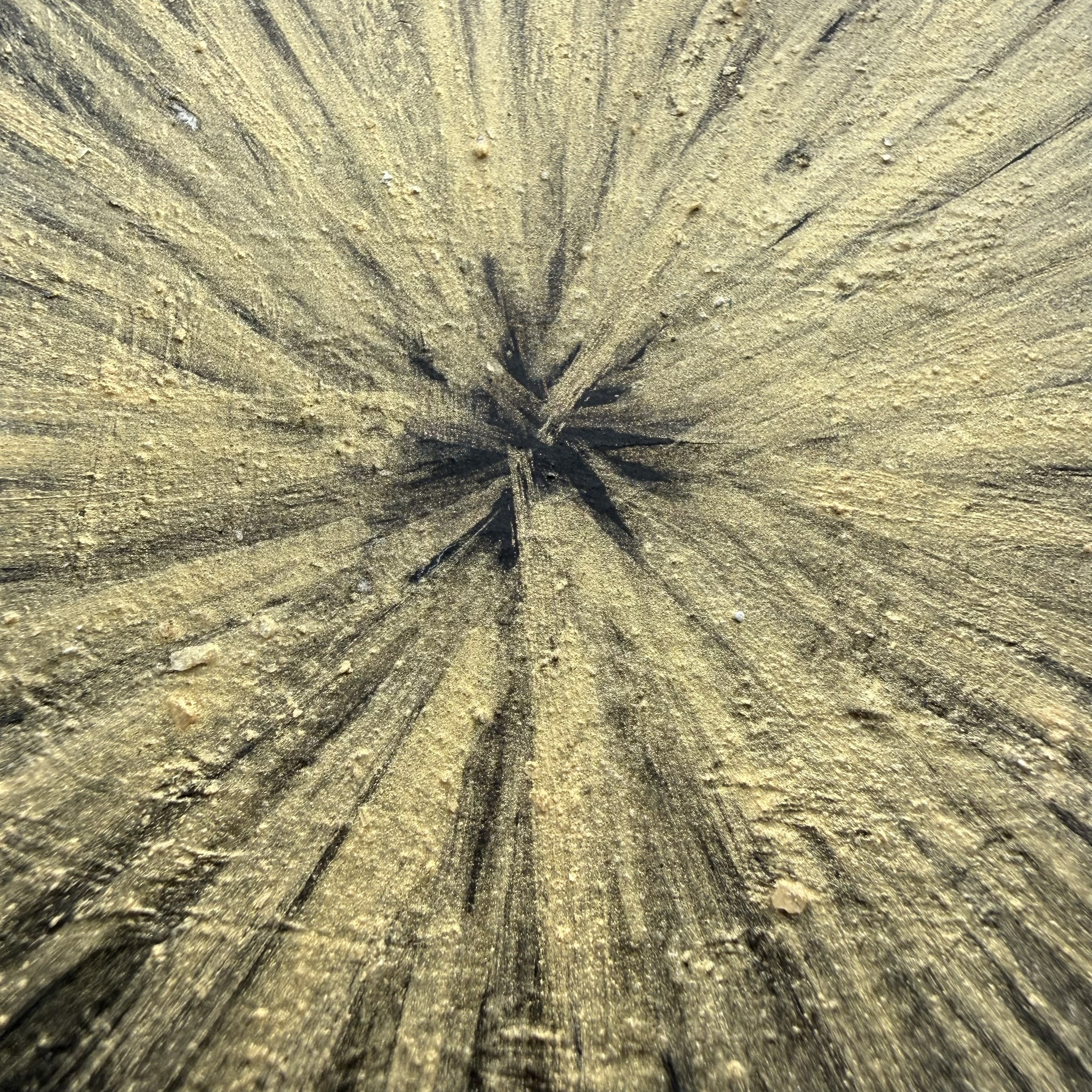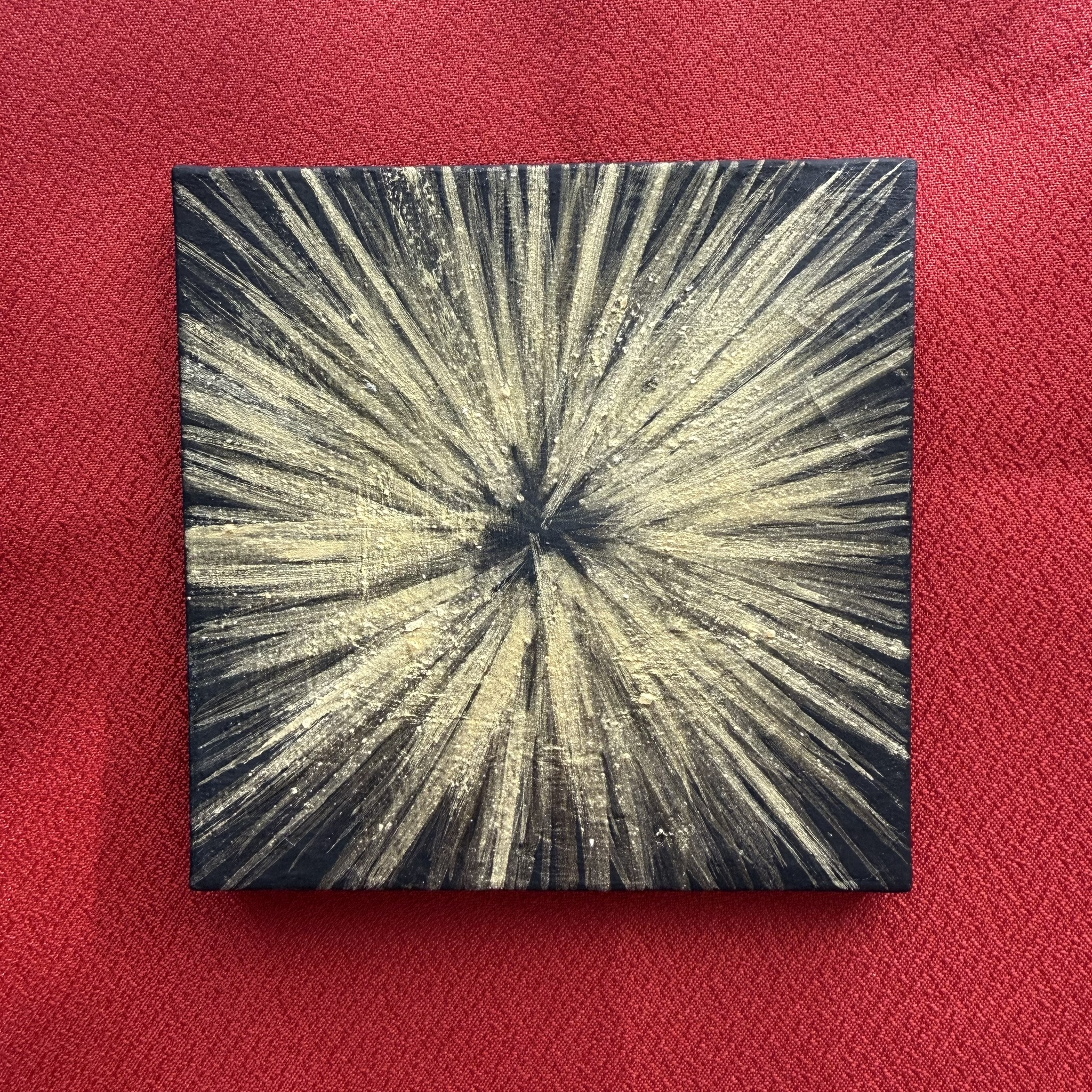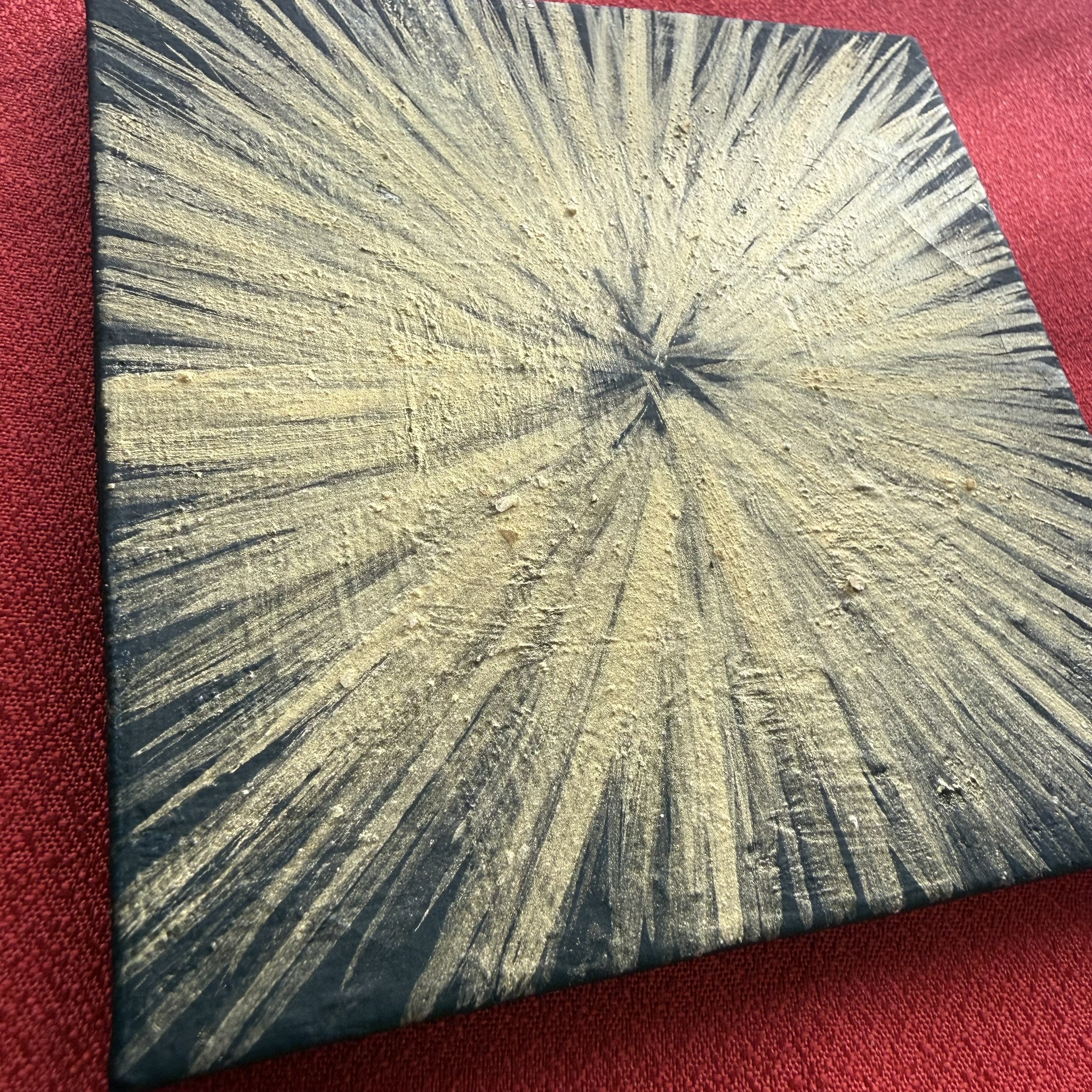 白いキャンバスにライトランゲージをしたため、麻の炭を塗り重ね、ルチルクォーツの岩絵の具で線を描き重ねました✨