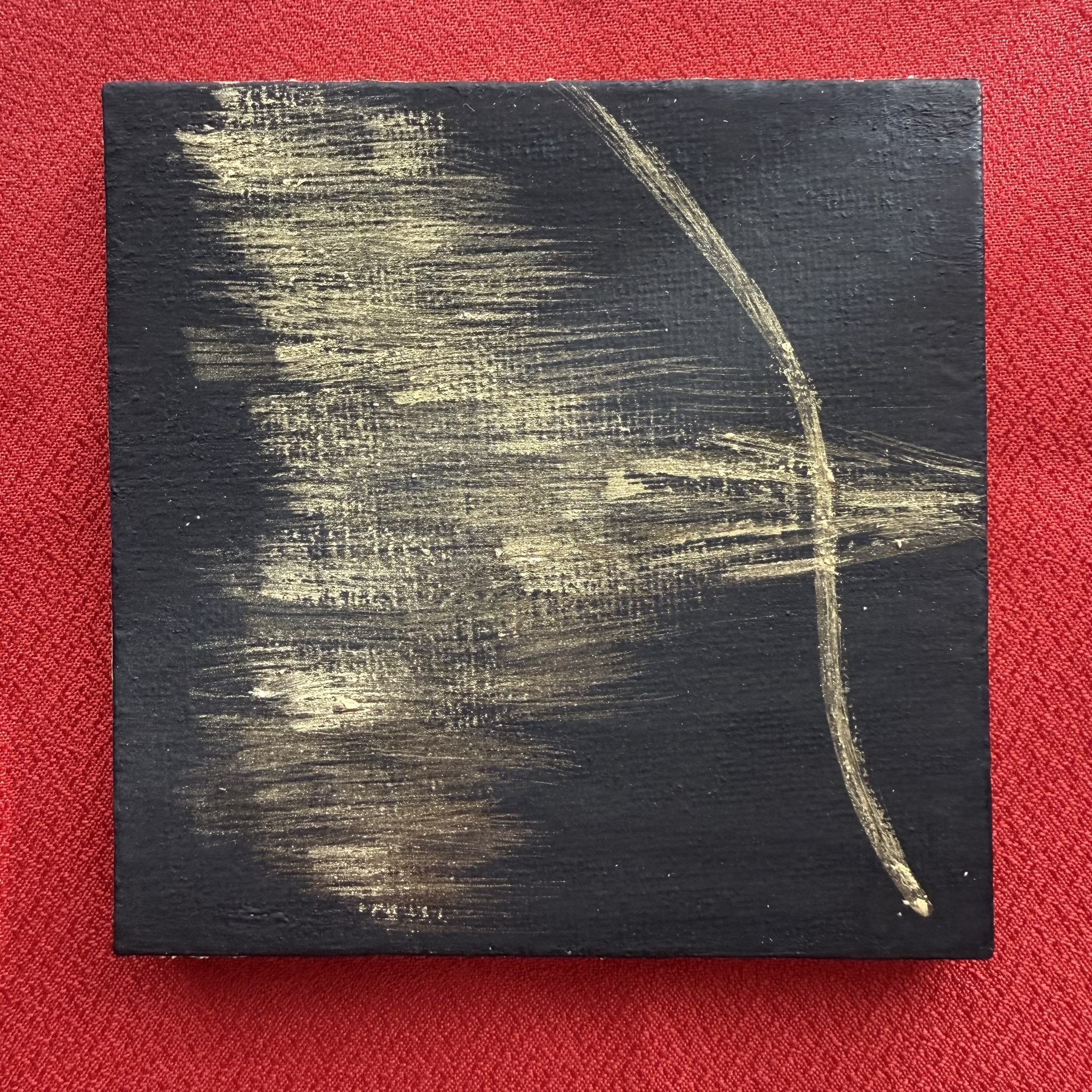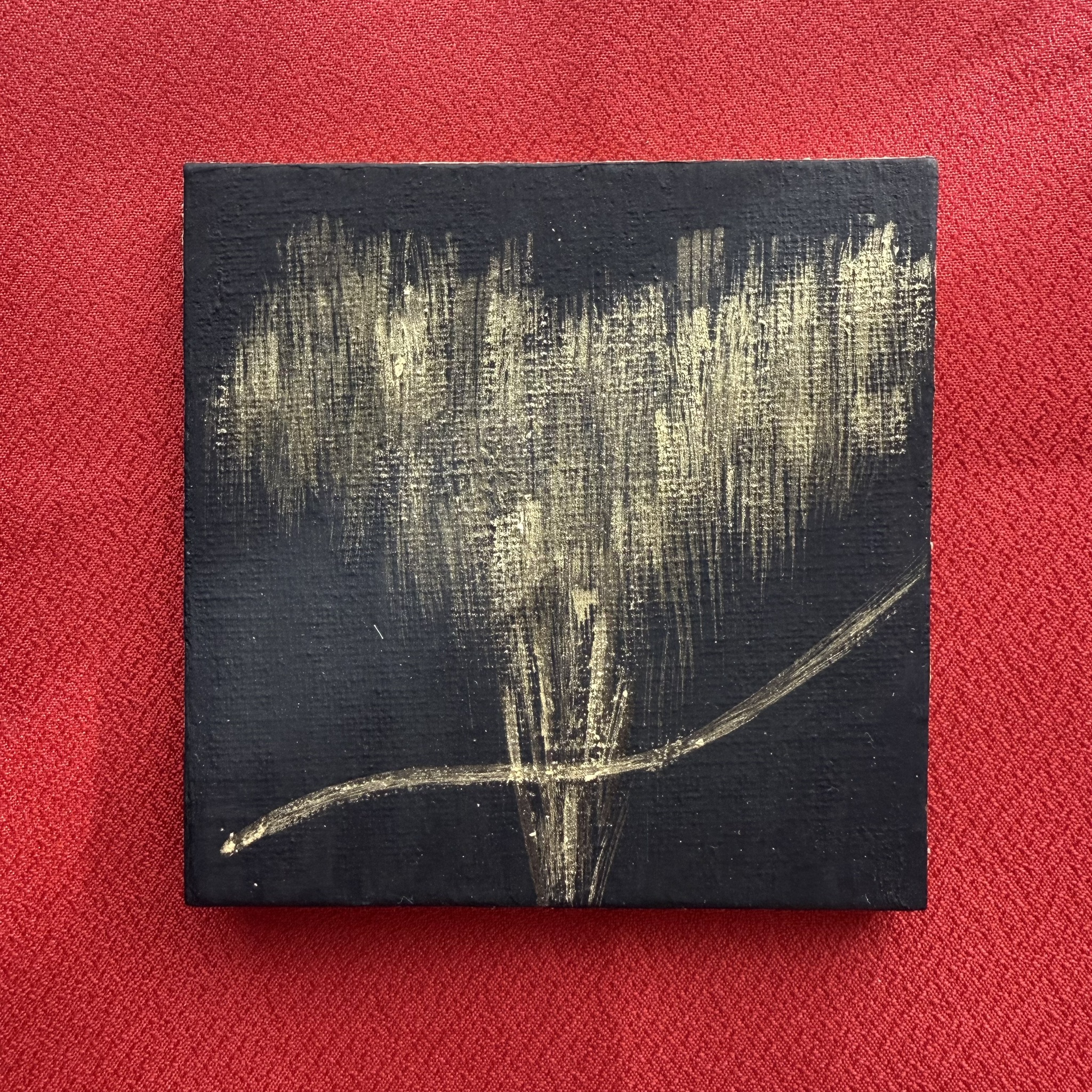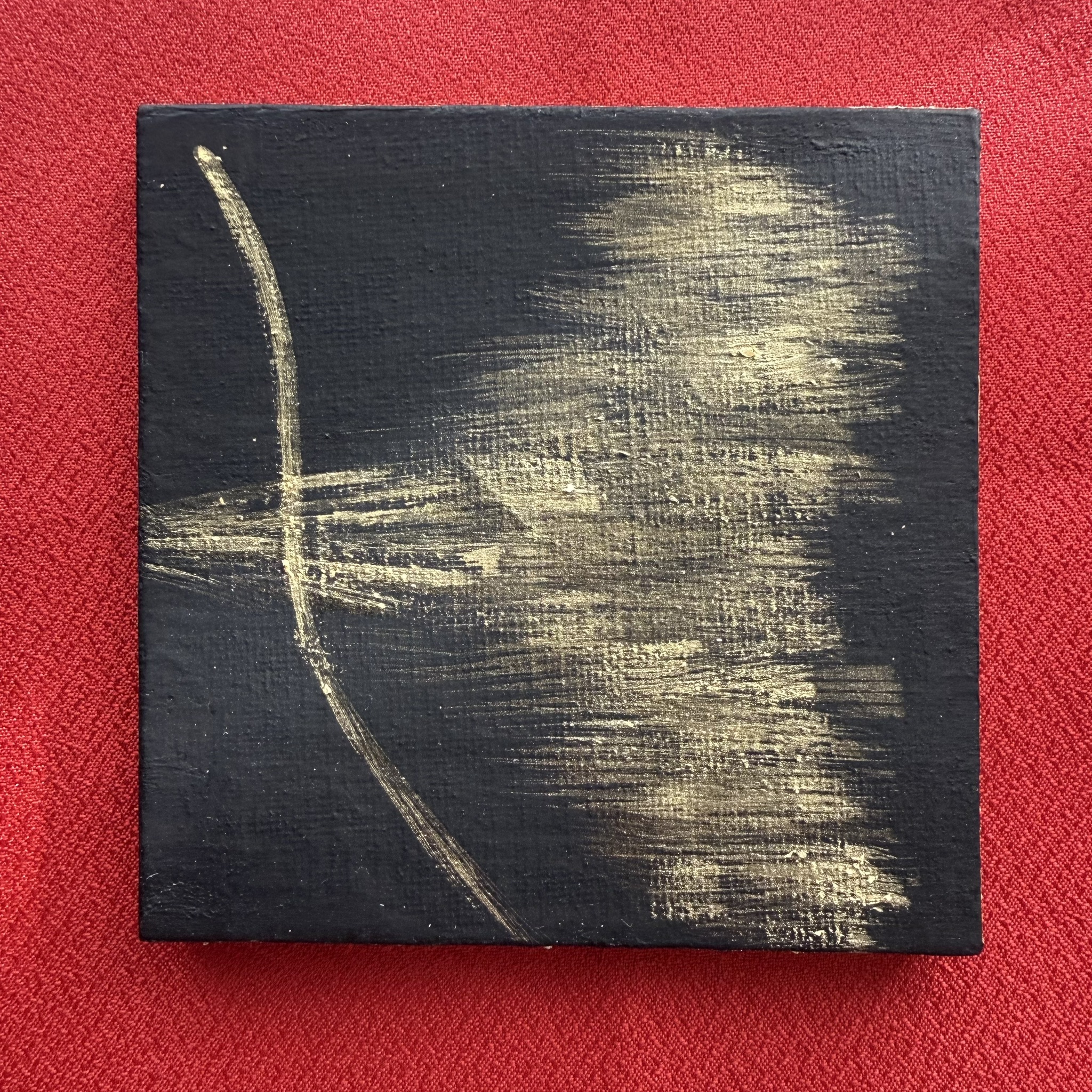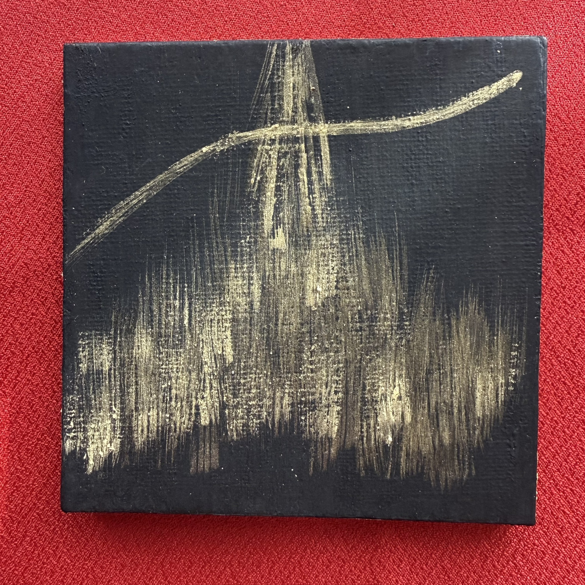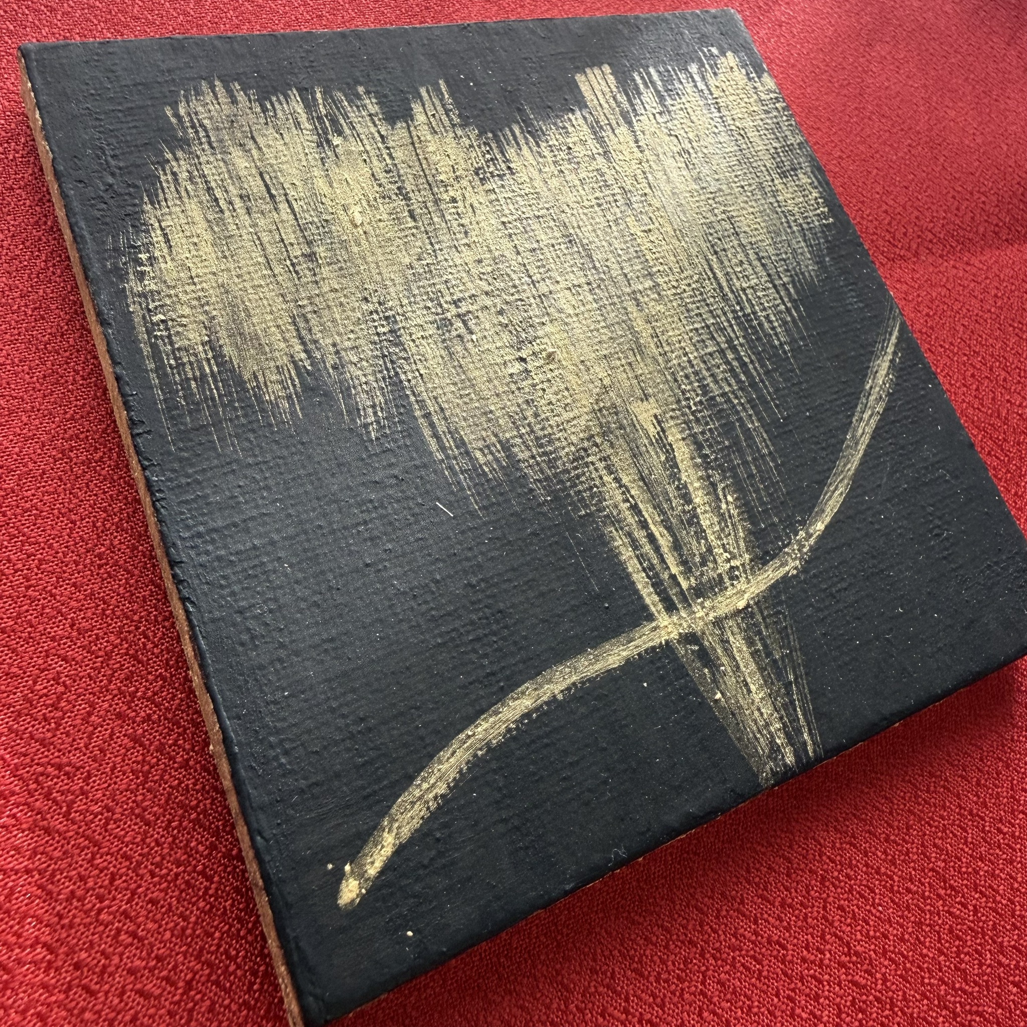 白いキャンバスにライトランゲージをしたため、麻の炭を塗り重ね、ルチルクォーツの岩絵の具で線を描き重ねました✨