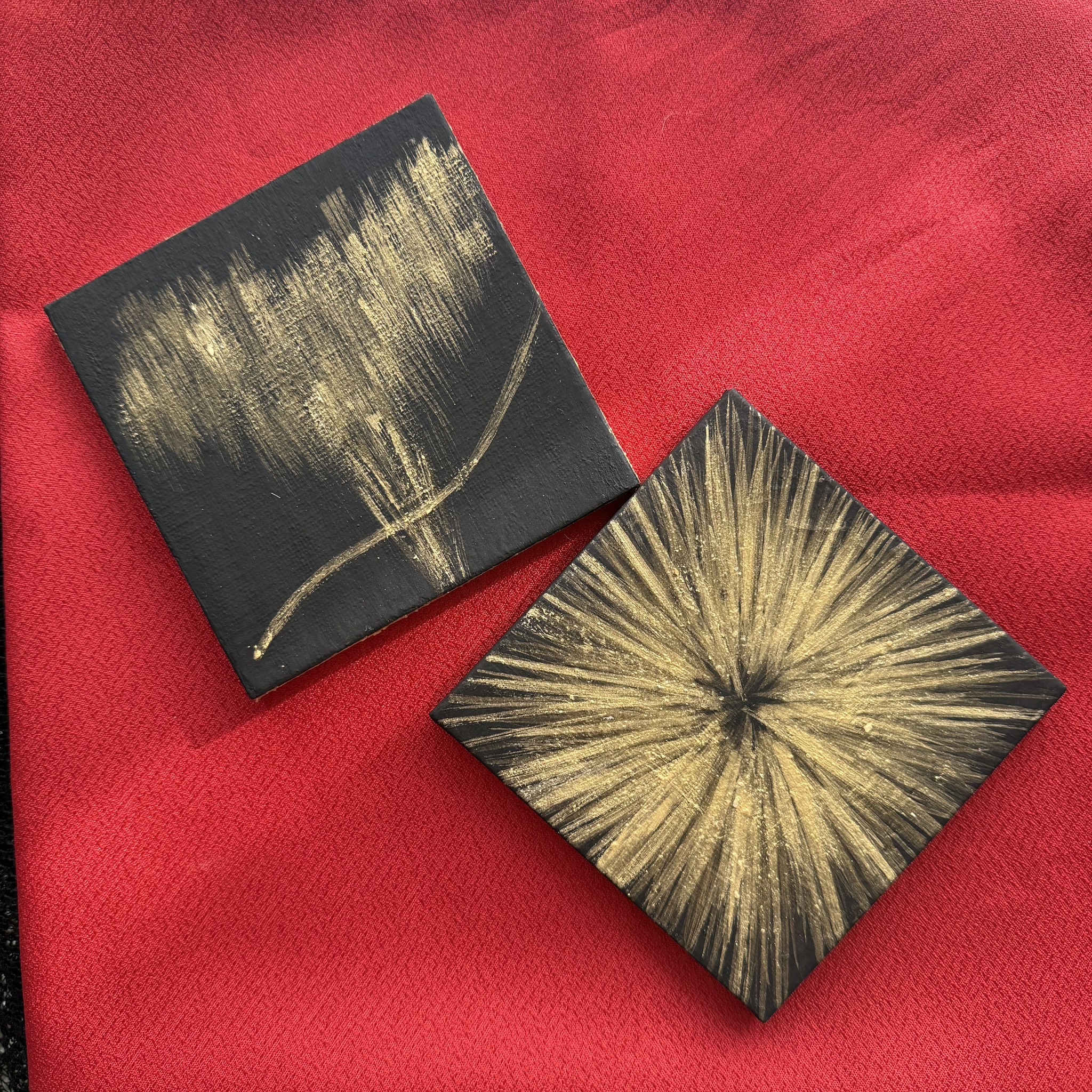パワーストーンを粉末にした絵の具を使っているため、表面に石の粒が乗っていたり、独特のざらざらした手触りになっています。