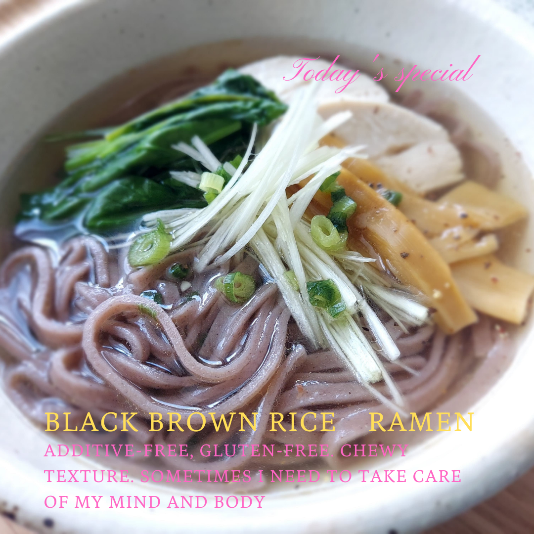 ・原材料は自社の自然栽培、お天道様干しコシヒカリの玄米と古代米の黒米、