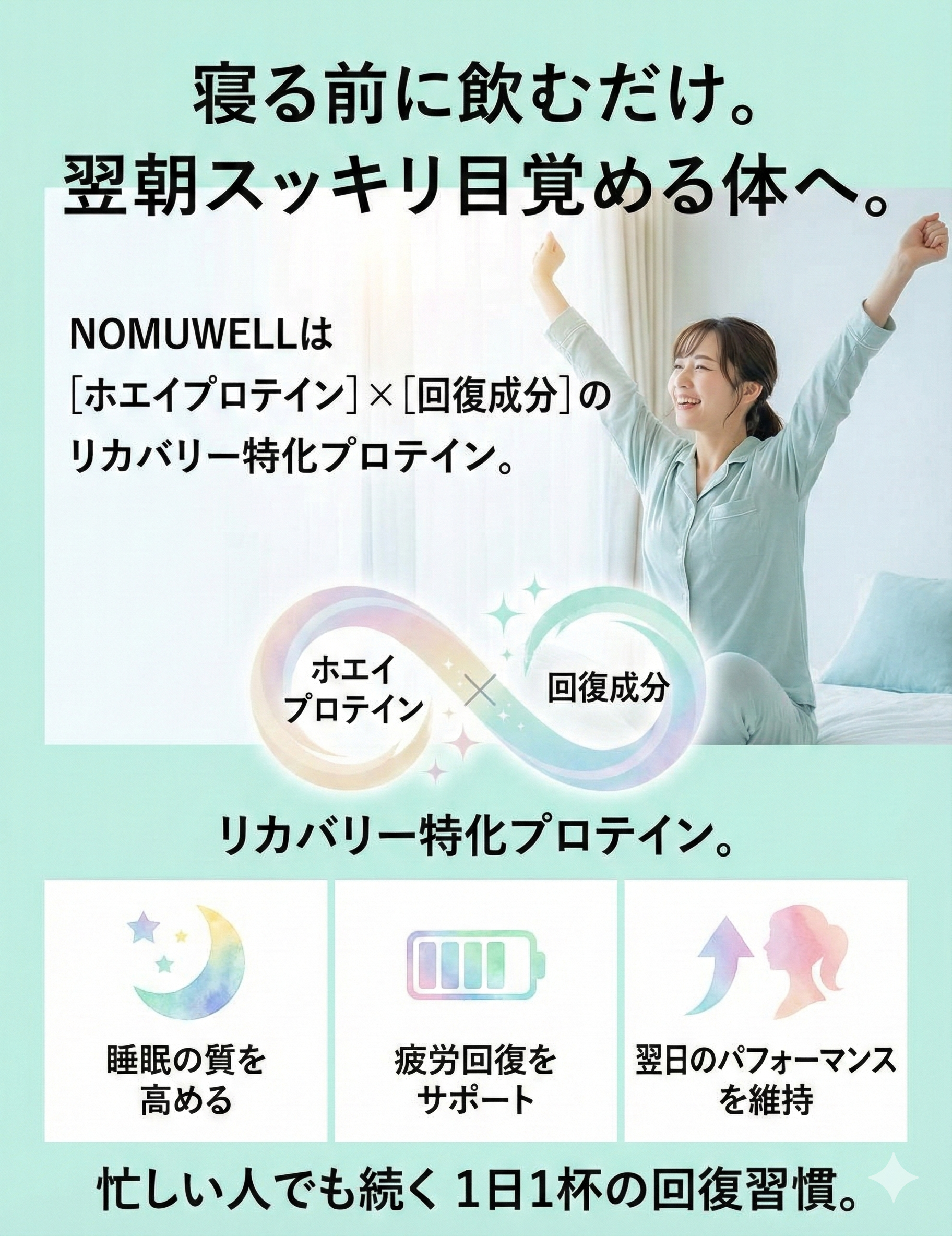 “飲んだあと・翌日まで整える”ための新発想プロテインです。