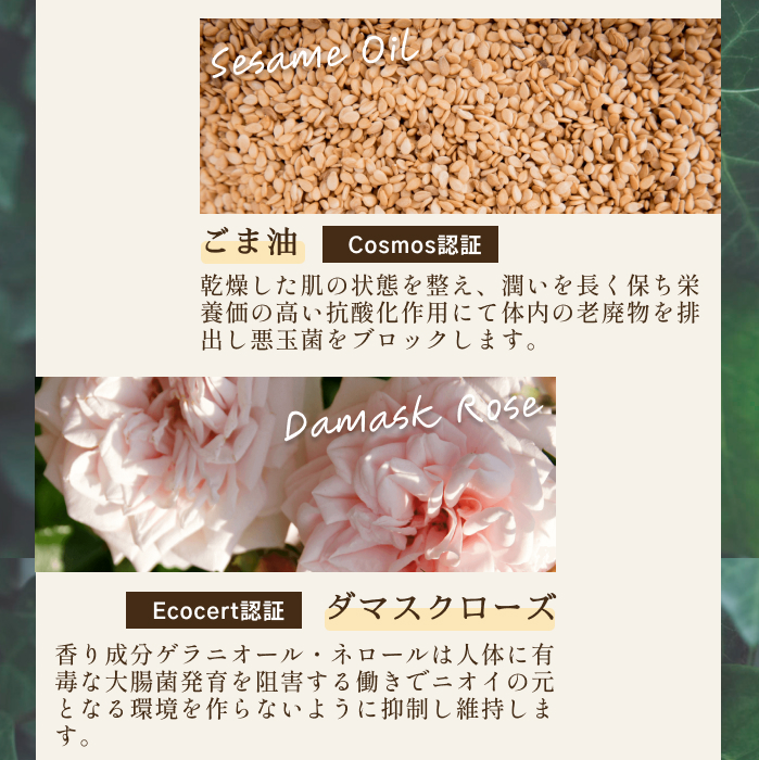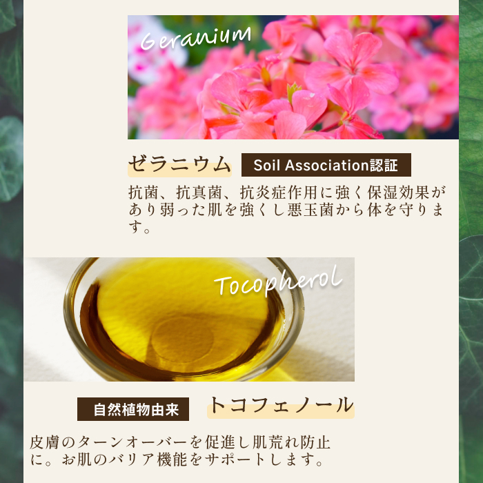 より安心安全なものを提供するためにオーガニック原料成分の厳選少数4品目を使用しました。
