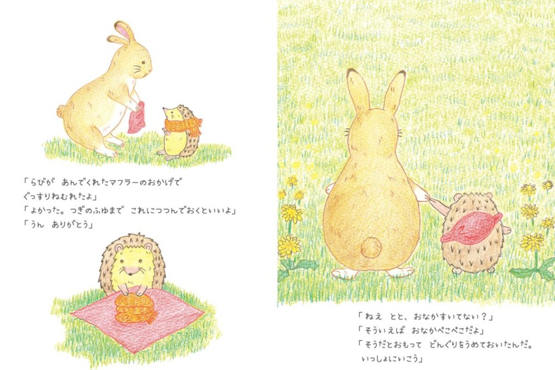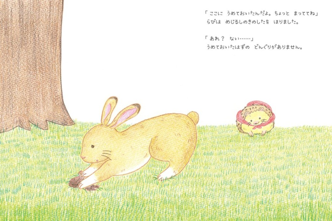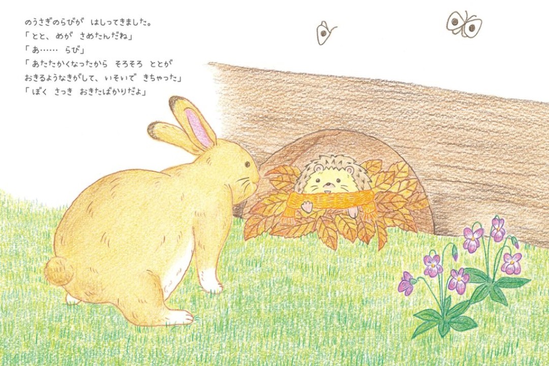 森に春がやってきて、動物たちが動き出しました。ハリネズミのととも冬眠から目覚めました。ととはお腹がペコペコです。野ウサギのらびはどんぐりをあげようとするのですが…