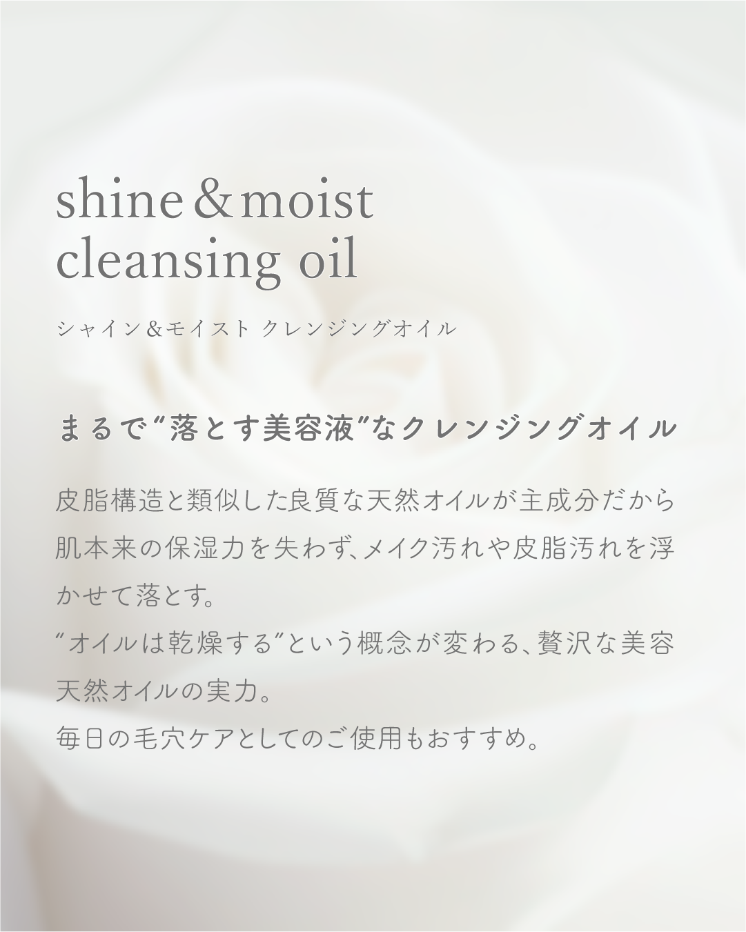 皮脂構造と類似した良質な天然美容オイルが主成分だから肌本来の保湿力を失わず、メイク汚れや皮脂汚れを浮かせて落とす。