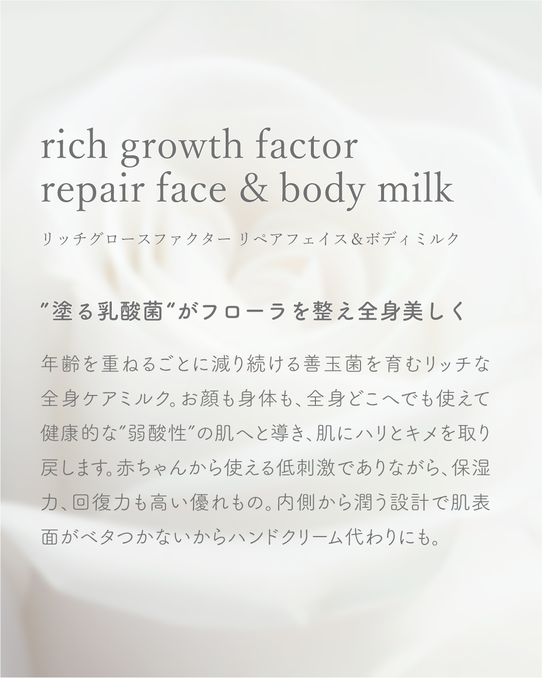 年齢を重ねるごとに減り続ける善玉菌を育むリッチな全身ケアミルク。