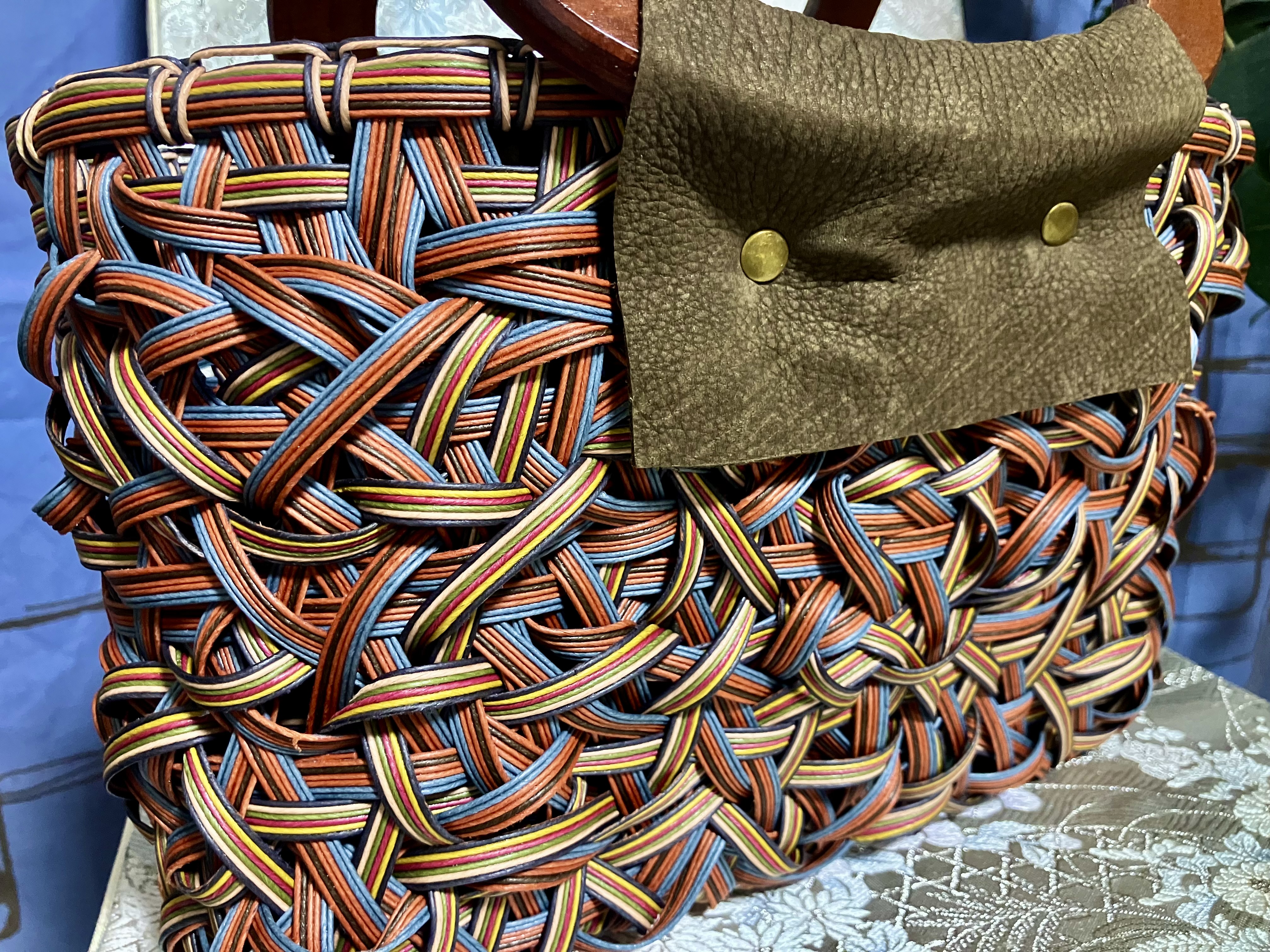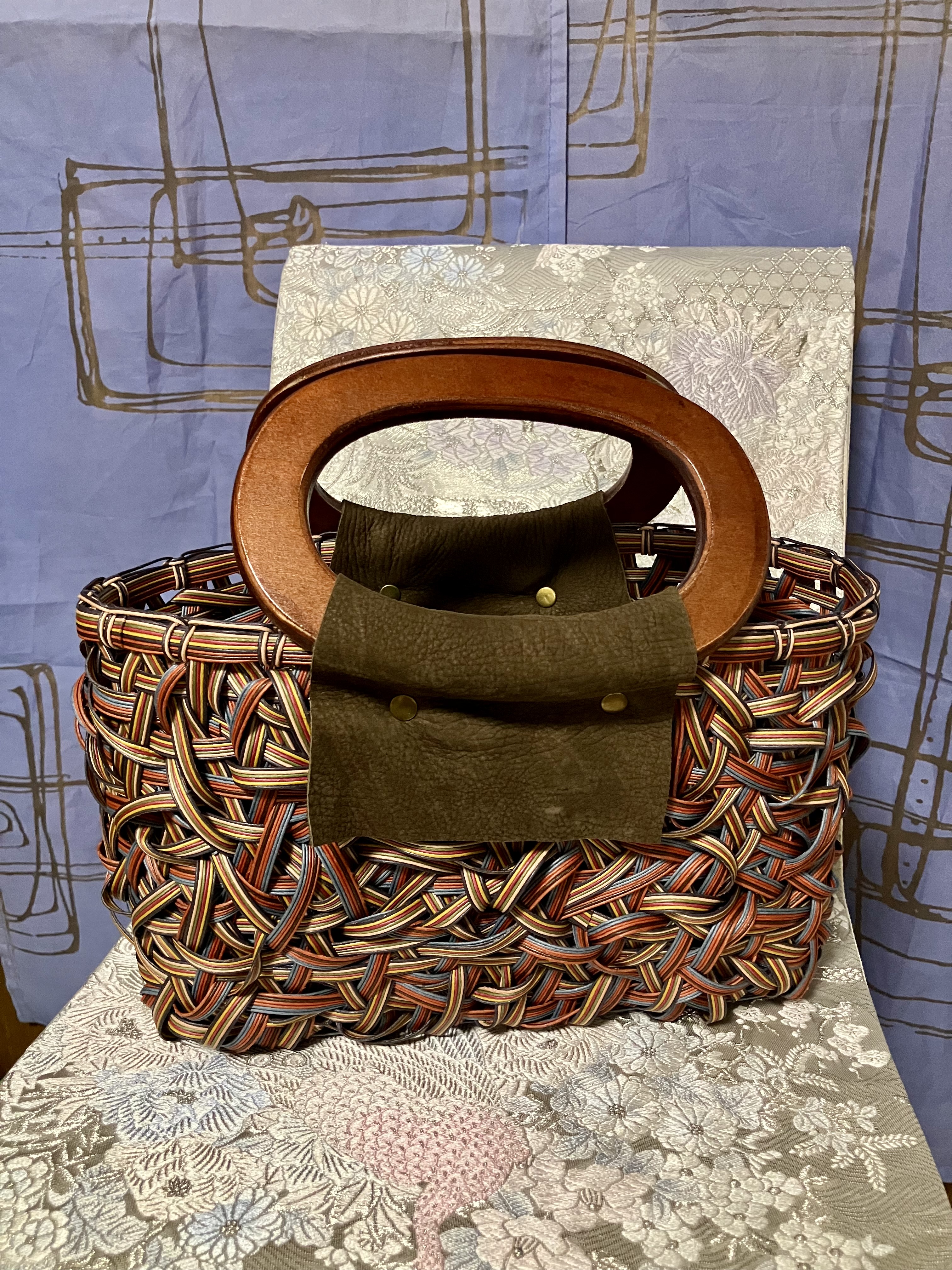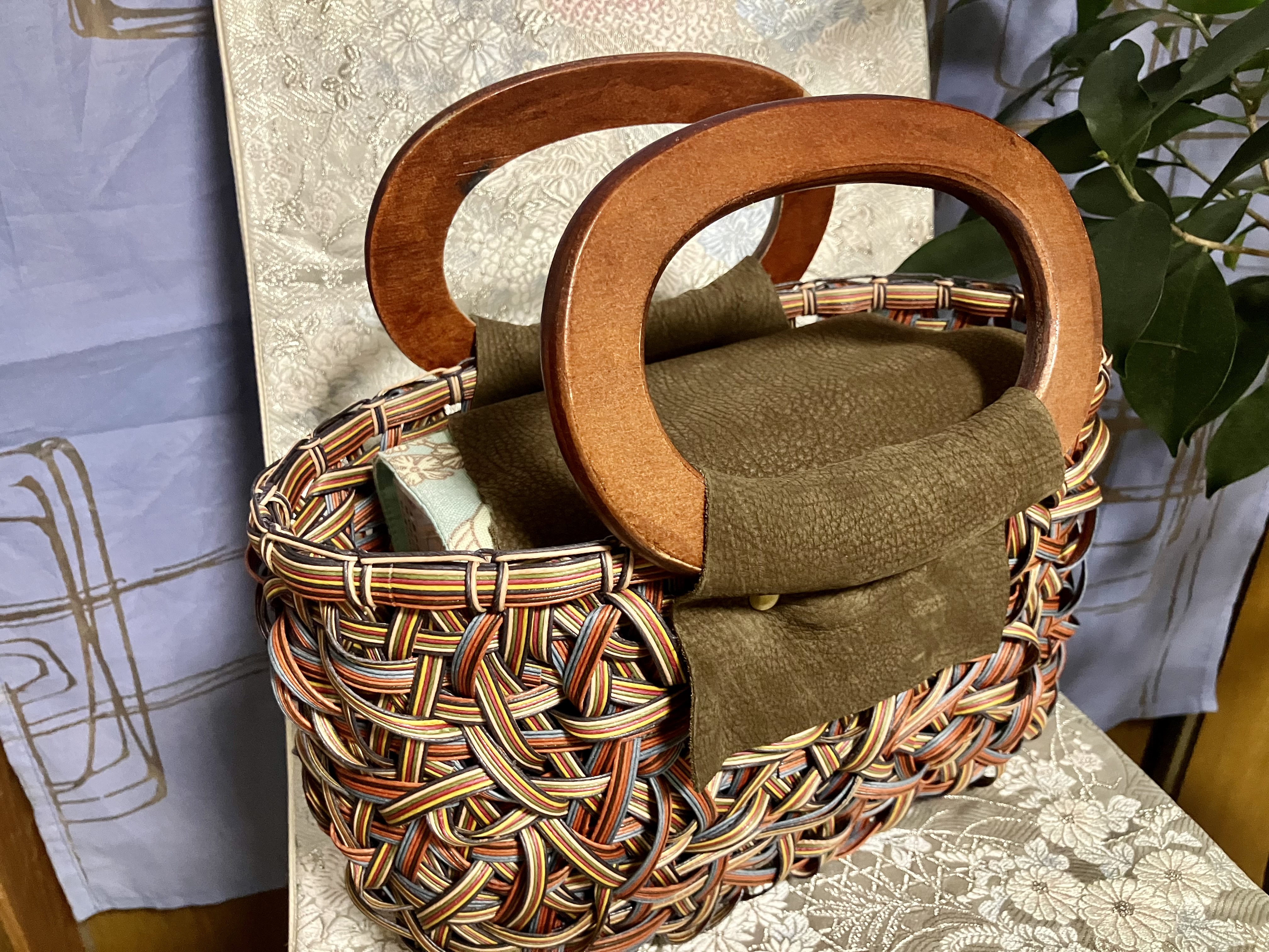 中身が見えないよう、被せるタイプの蓋(革)が付いています。