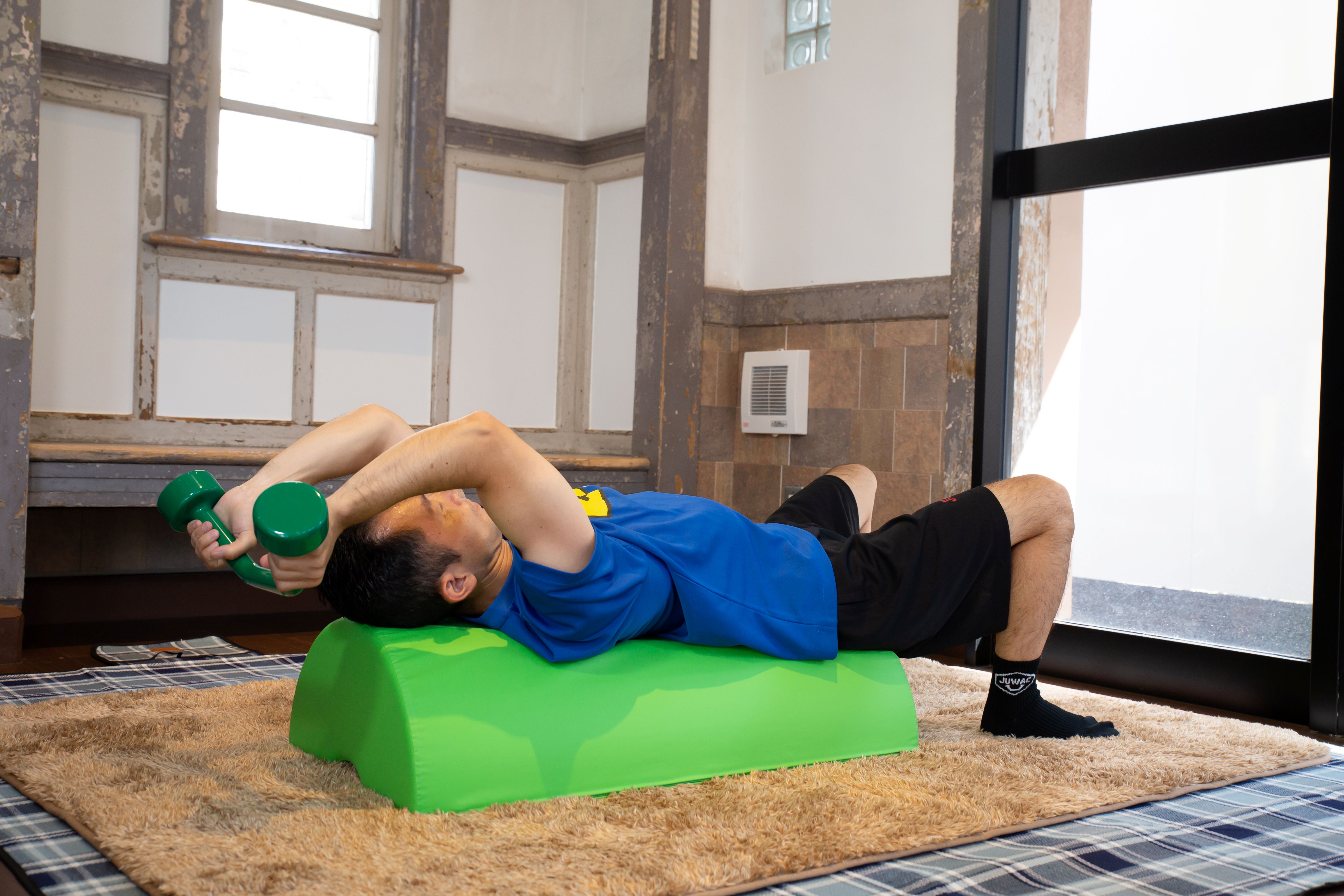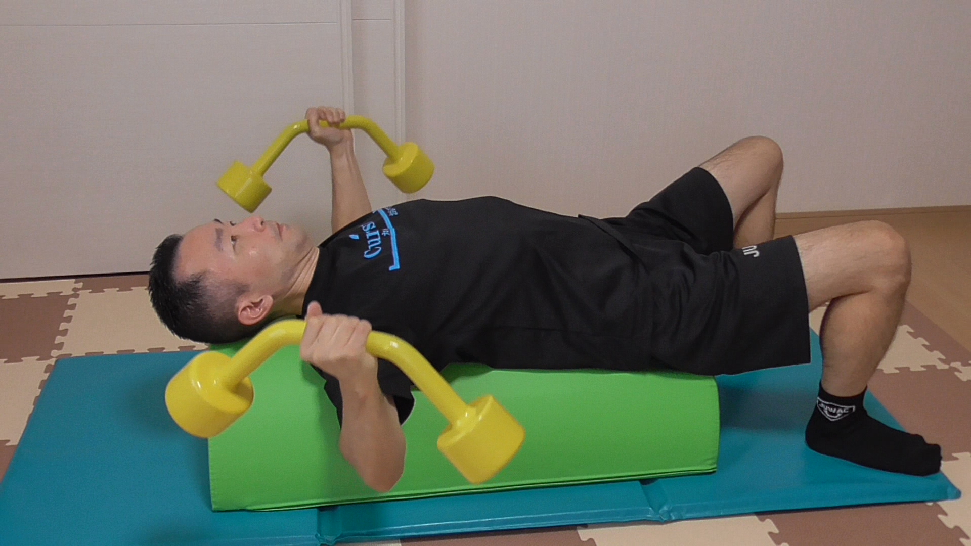 ダンベルなどでの上半身トレーニングがご家庭でも出来ます。