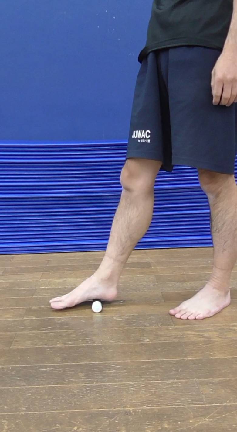 足の裏をコロコロ転がして足裏の機能を高めます。