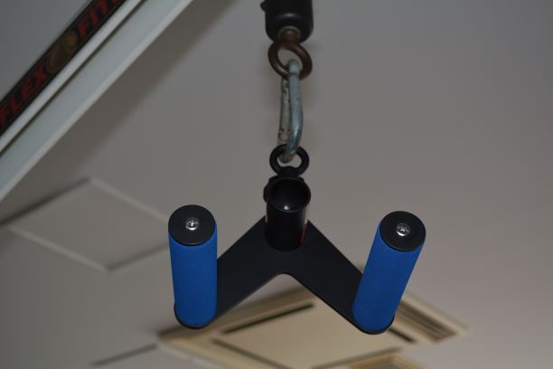 ラットプルダウンやロープーリーロウなどの接続部にリングで取り付けて使用できる機能を兼ね備えています。