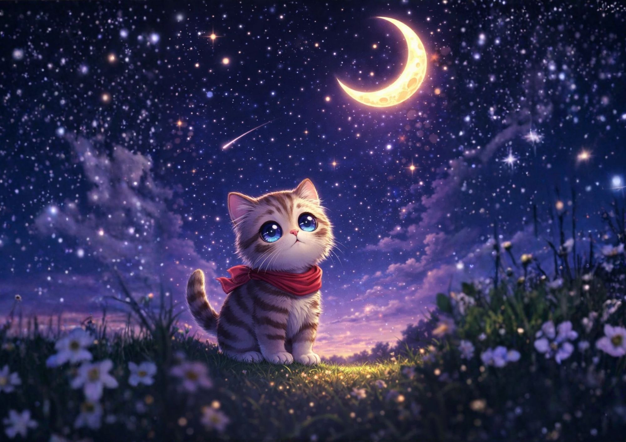 「いつか、あんな遠くまで行ってみたい」 宇宙飛行士に憧れる子猫が、夢の中で大空を飛び出し、銀河を駆け巡る大冒険。パラシュートで帰還した子猫を待っていたのは、温かな喝采と、まだ見ぬ明日への希望でした。この物語は、お子様の「なりたい自分」を自由に描く力を引き出します。