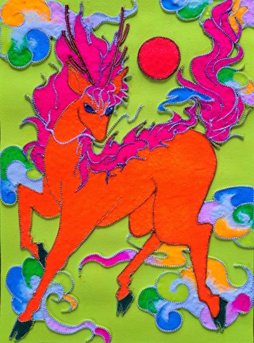 塩絵は世界初の天然塩と絵の具のコラボであり、医学的に認められた色彩療法です。明度・彩度の高い色彩を使い、「上手より楽しんで描く事が大事」な作品です♪色鮮やかで自由な絵を楽しんでくださいませ(^-^)/