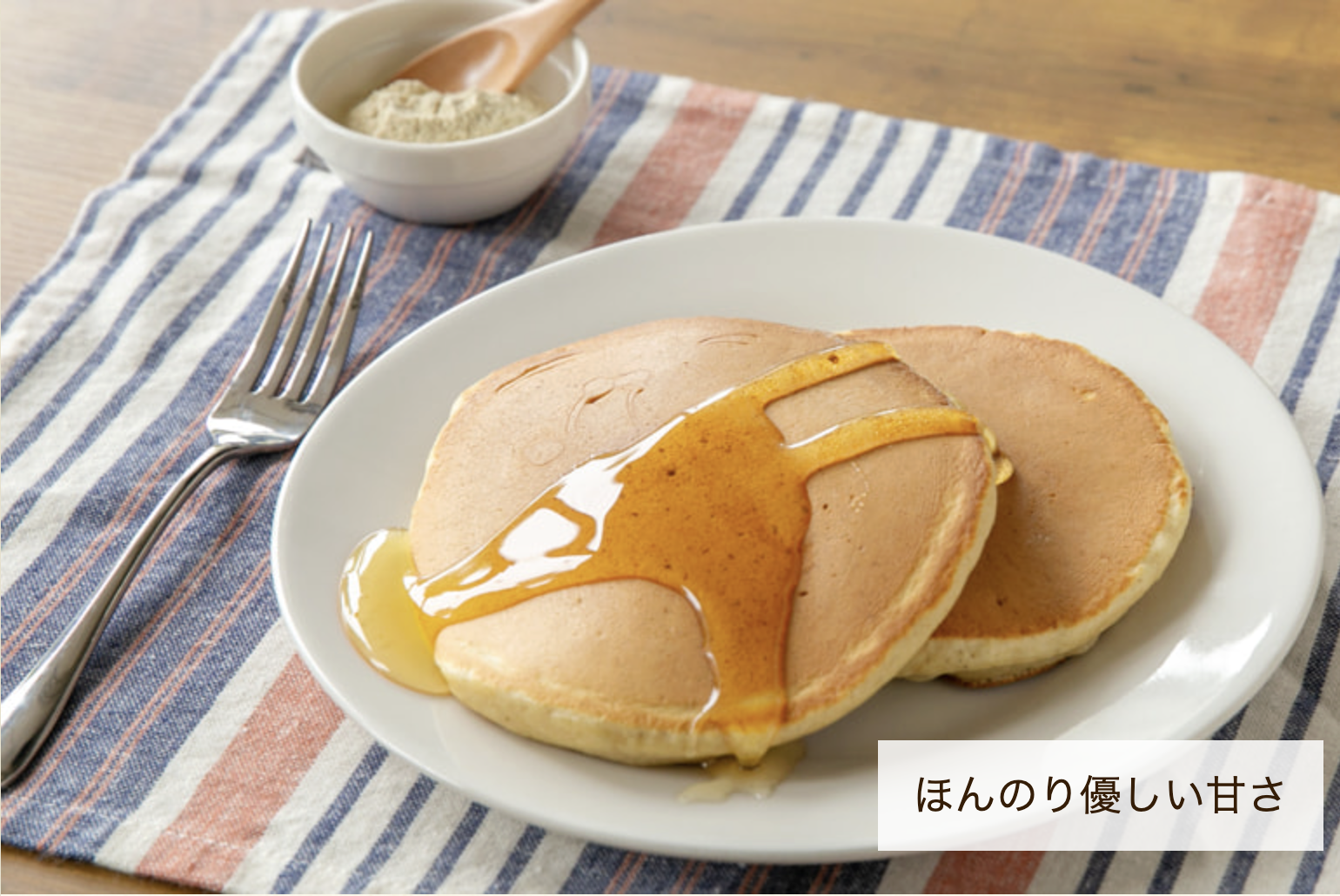 料理やお菓子など、アレンジの幅が広い「きく芋パウダー」。上野さんが、「ケーキやマフィンの生地に混ぜるのもおすすめ」と、教えてくれました。今回は、ホットケーキを作っていきます!