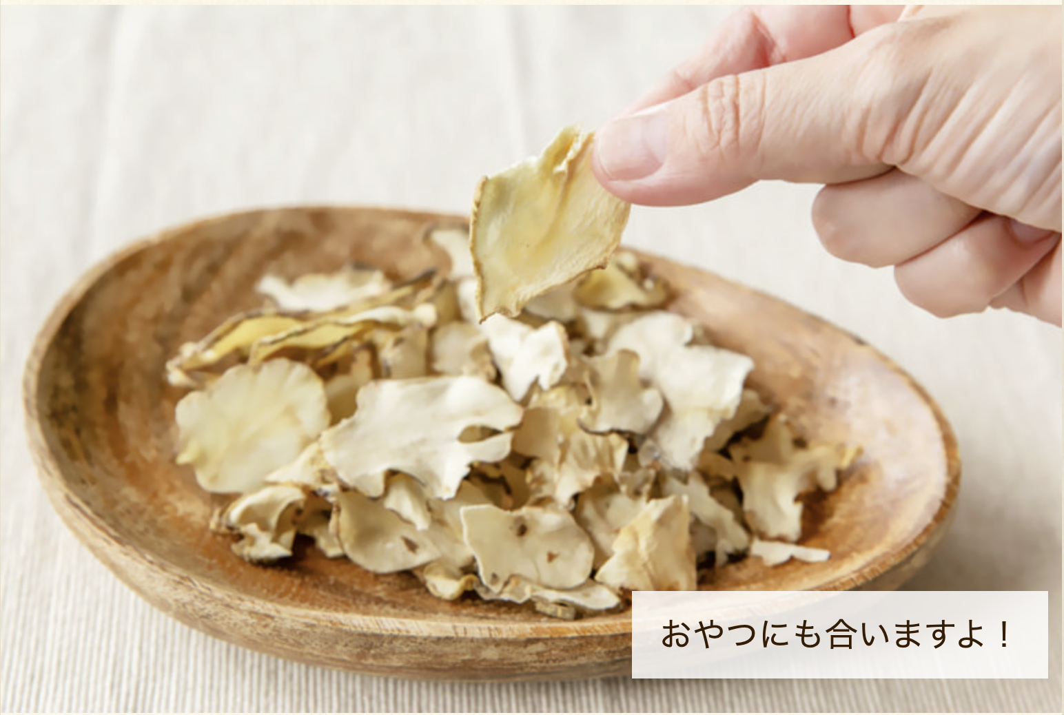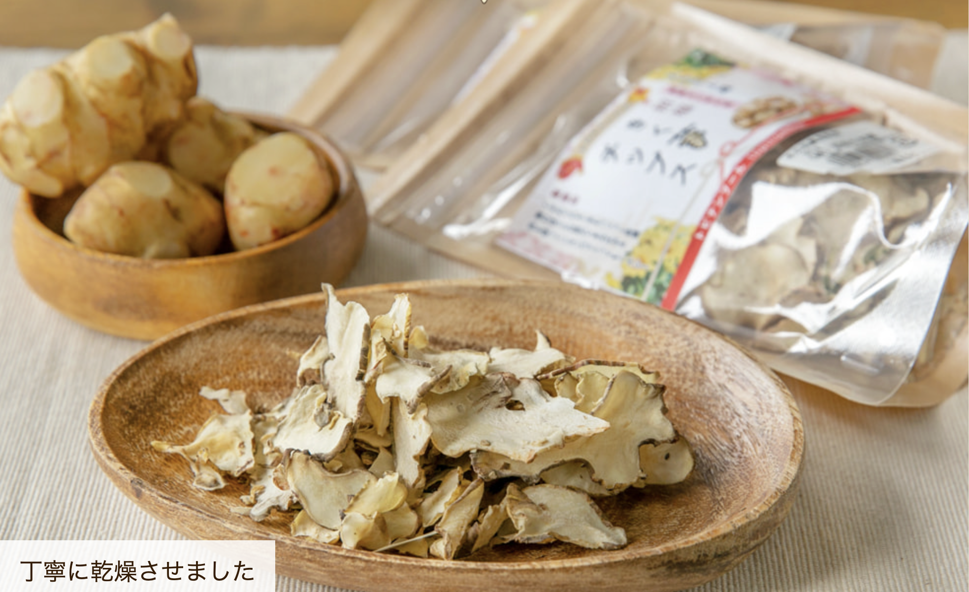 きく芋の生産から加工までを一貫して行う、上越市頚城区の「百姓や本舗」。今回は、農薬や化学肥料を使わずに育てた「きく芋」を使った「きく芋チップス」をご紹介します。こだわりは、きく芋を「薄さ1mm」にスライスすること。「2mmだと歯ごたえがありすぎるんです。料理に使うことも考えるとこの厚さがベスト!」と、代表の上野さん。1日ほどかけてじっくり低温乾燥し、きく芋の優しい甘さと香りを凝縮しています。そのまま食べるのはもちろん、サラダのトッピングや、炊き込みご飯など使い方もさまざまですよ。