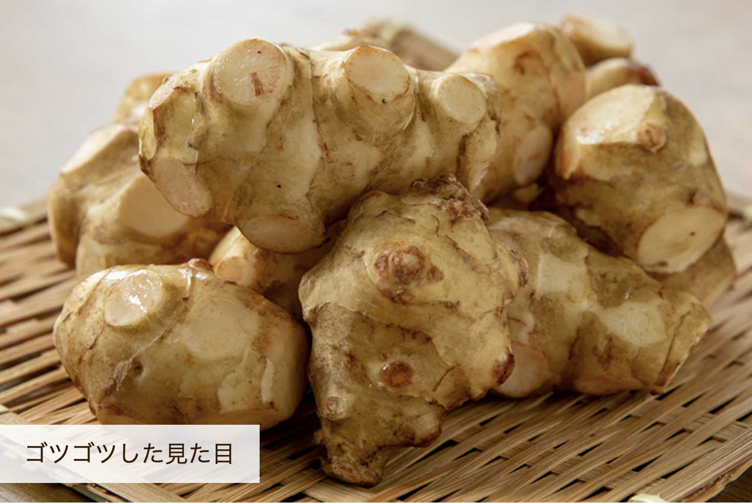 きく芋は、北アメリカ原産のキク科ヒマワリ属の多年草。草丈は1〜3mほどに成長し、秋には菊に似た黄色い花を咲かせます。食用とされるのは、「塊茎(かいけい)」と呼ばれる、地中深くで育つ肥大した茎の部分。生姜に似たゴツゴツとした見た目が特徴です。口に入れると、優しい甘さと、ごぼうに似た香りがほんのりと広がりますよ。水溶性食物繊維の一種「イヌリン」が含まれています。