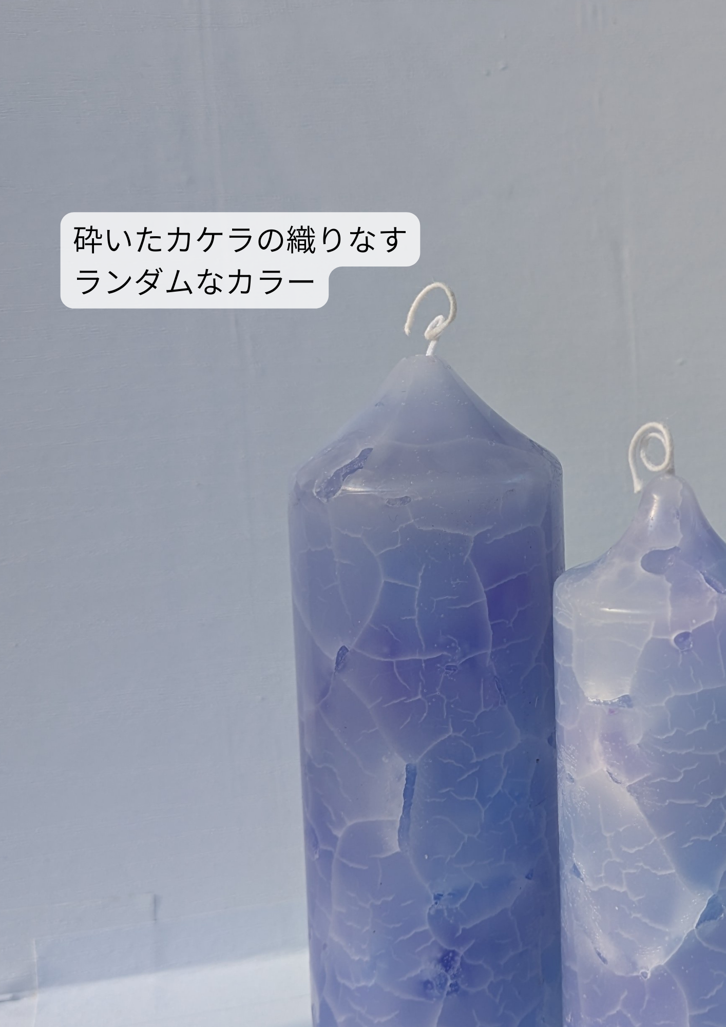 過去に製作試作したキャンドルを砕き壊して、新たな生命を吹き込んだリメイクキャンドルです。