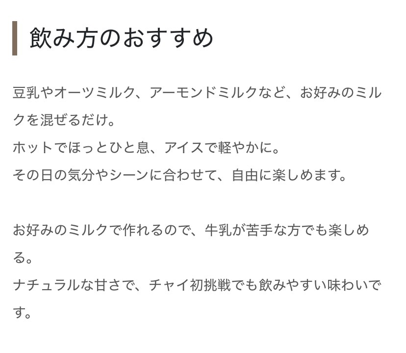 | 名称 | オーガニックマサラチャイ(インスタントタイプ) |