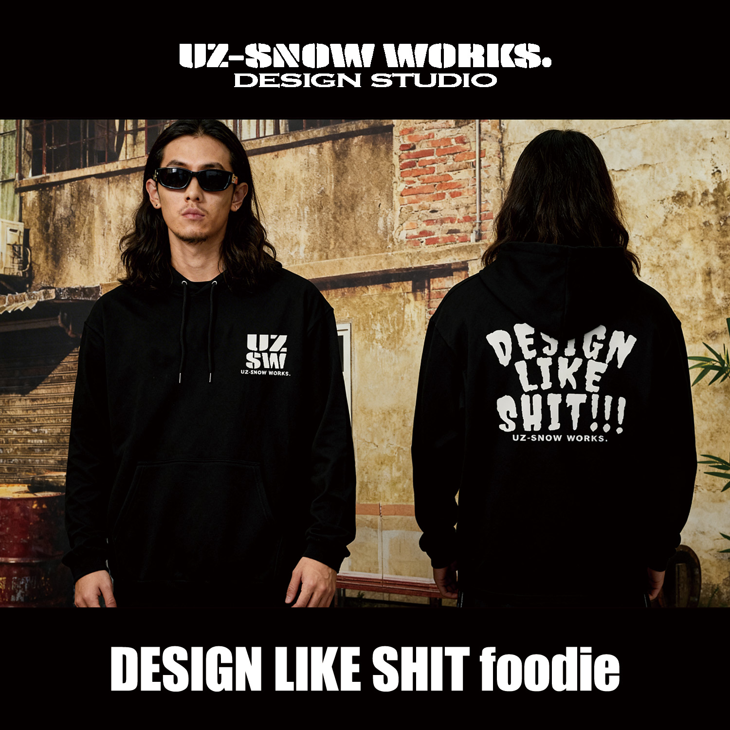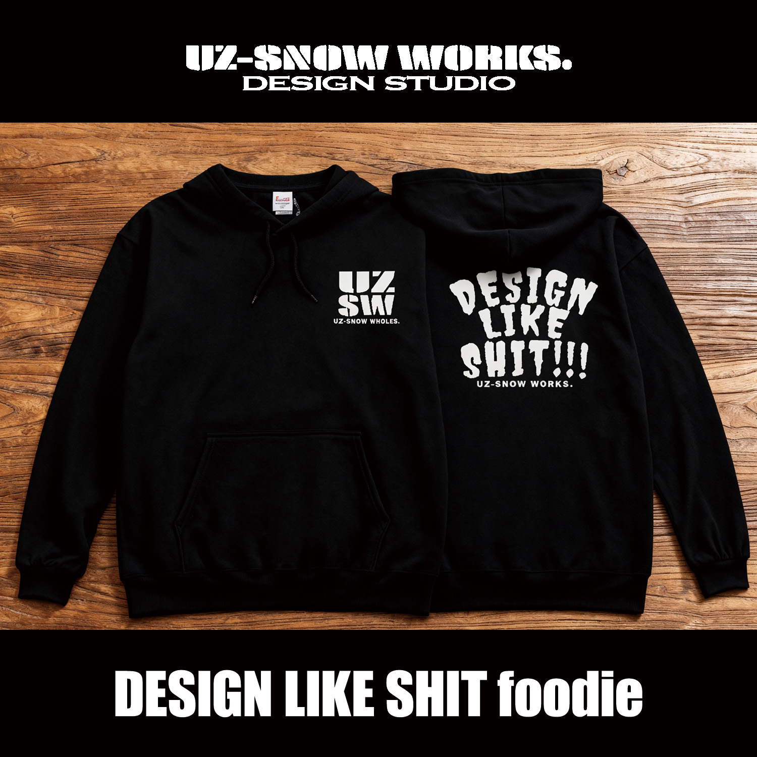 UZ-SNOW WORKS DESIGN STUDIO.が展開するブランドの中核コンセプト「DESIGN LIKE SHIT」を体現したパーカー。