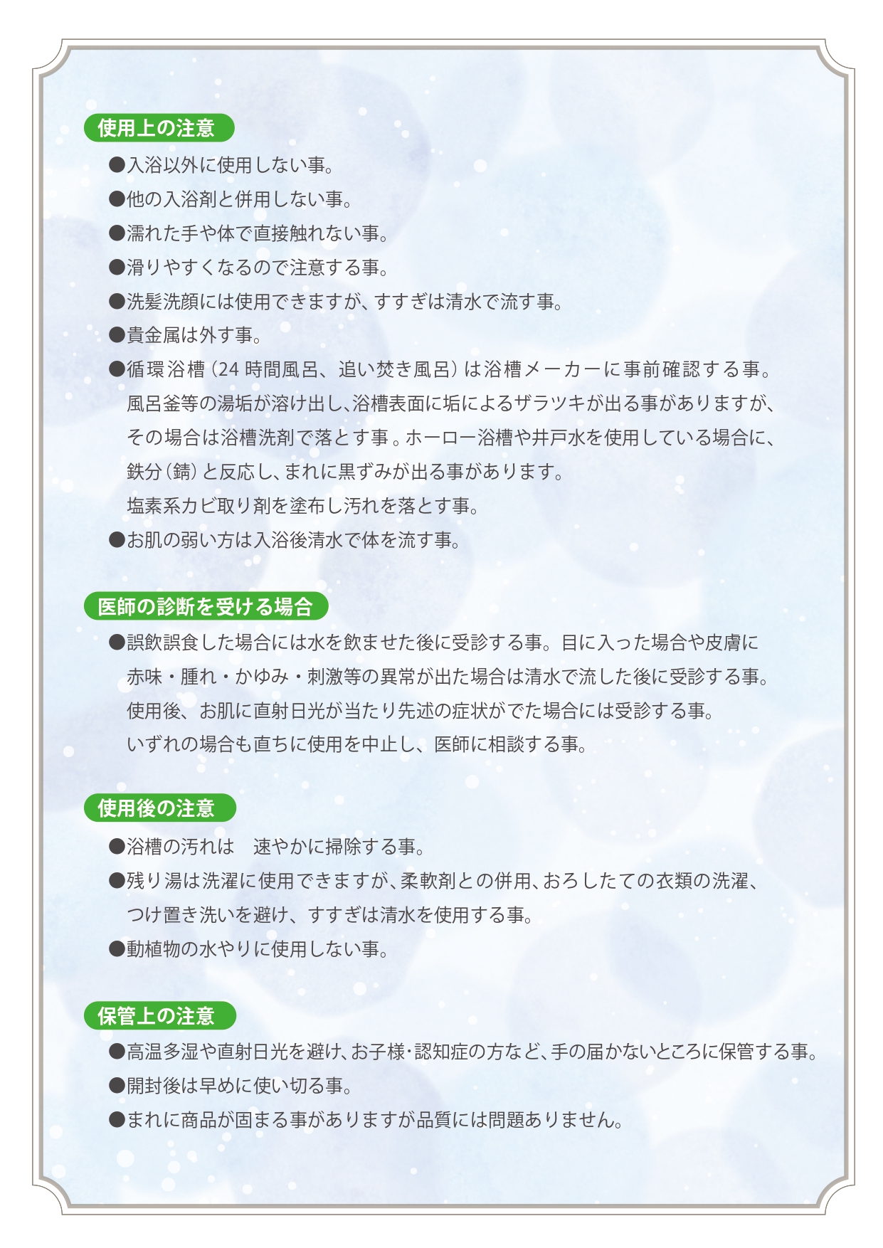 ※浴槽や風呂釜を傷めるイオウは入っておりません。