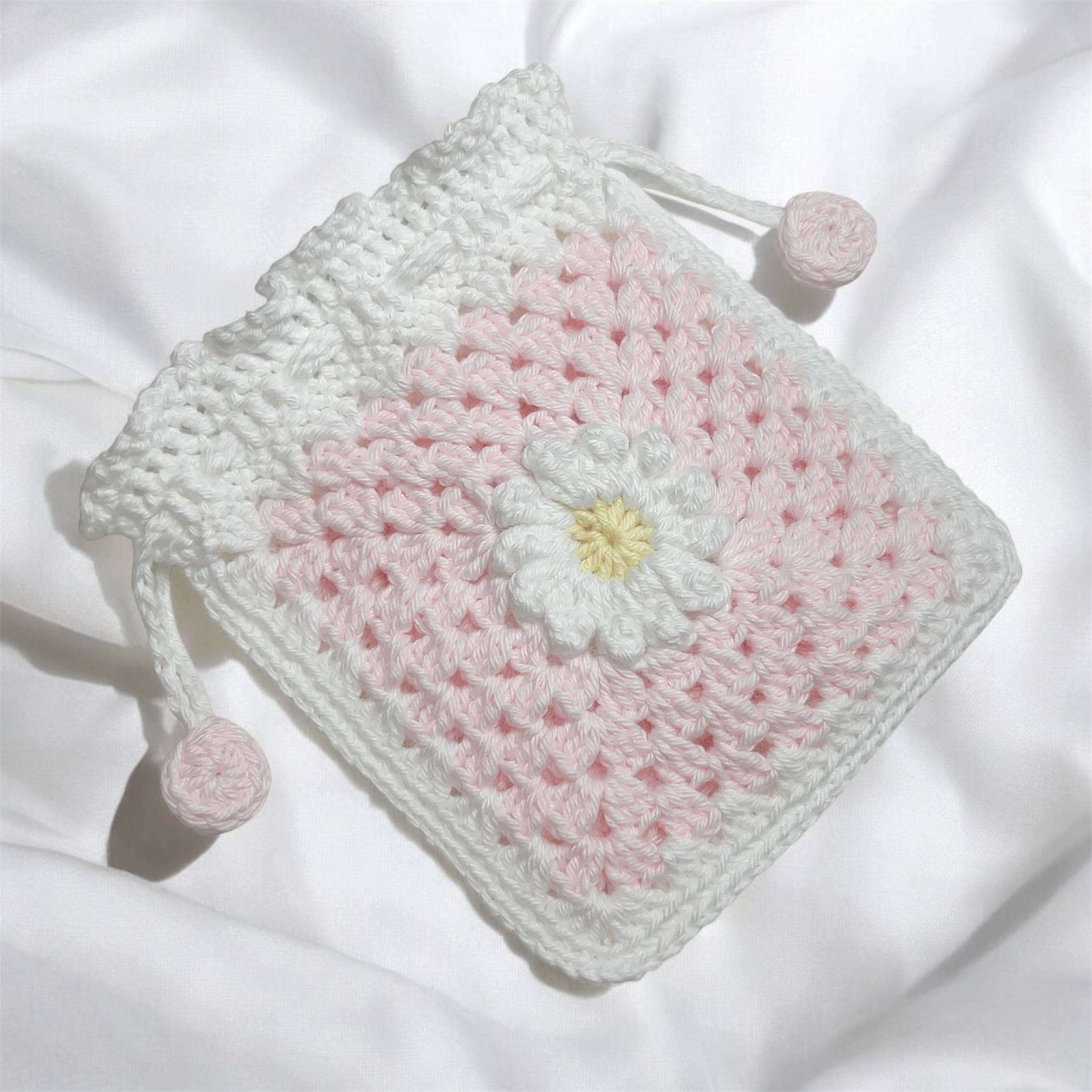 ハンドメイドです。お花モチーフのポーチ✿*:・゚