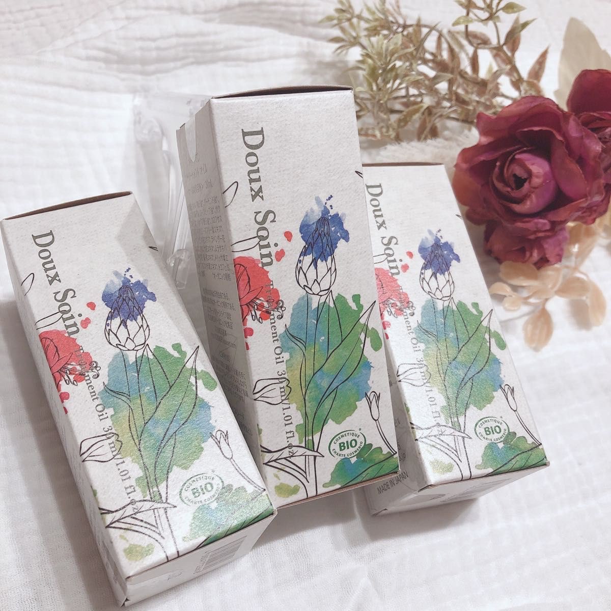 原材料や商品規格:ホホバ種子油*、アーモンド油*、ヒマワリ種子油、ローズヒップ油*、ザクロ種子油*、バオバブ種子油*、クロフサスグリ芽エキス*、ローズマリー葉エキス*、トウキンセンカ花エキス*、ラベンダー花エキス*、アルニカ花エキス*、ムラサキバレンギク花/葉/茎エキス*、メリッサ葉エキス*、アロエベラ葉エキス*、トコフェロール、香料 *オーガニック原料