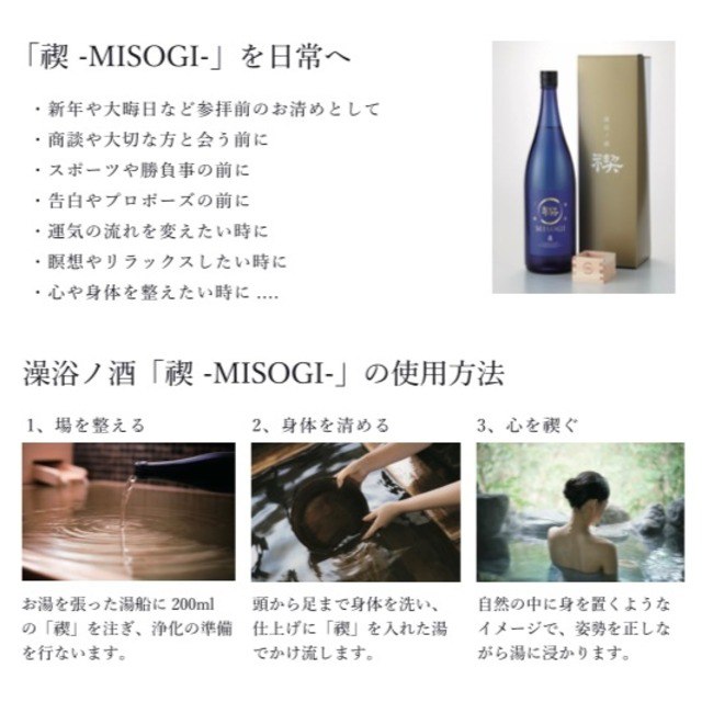 身と心、魂の浄化を目的としたお酒で、入浴時に、お風呂へ投入する専用のお酒です。