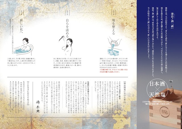 澡浴ノ酒「禊」は、清めの力を持つ酒や塩にこだわり、澡浴のために生み出されました。