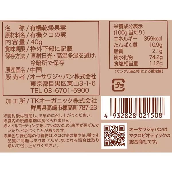 | 栄養成分 | 100g当たり/エネルギー 359kcal/タンパク質 10.9g/脂質 2.1g/炭水化物 74.2g/食塩相当量 1.12g |