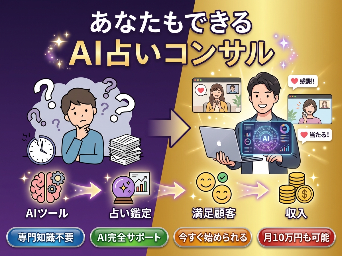 ① 占いキャラクターの設計 名前・世界観・口調・得意ジャンルまで含めた「売れるキャラクター」の作り方を一緒に設計します。顔出ししなくてもOK・実名不要。AIが自然に語れる人格を作るのがポイントです。