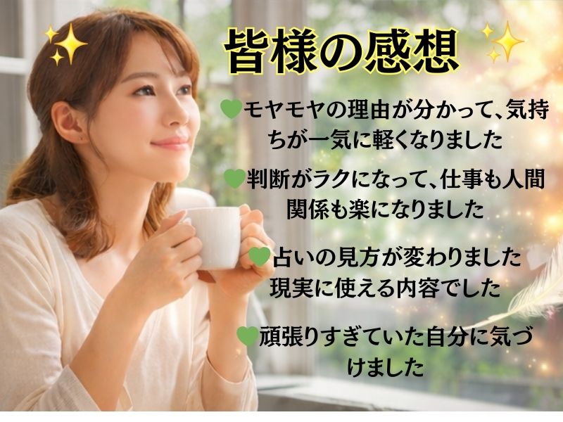 🔸今感じているモヤモヤや迷いを整理しやすくなります
