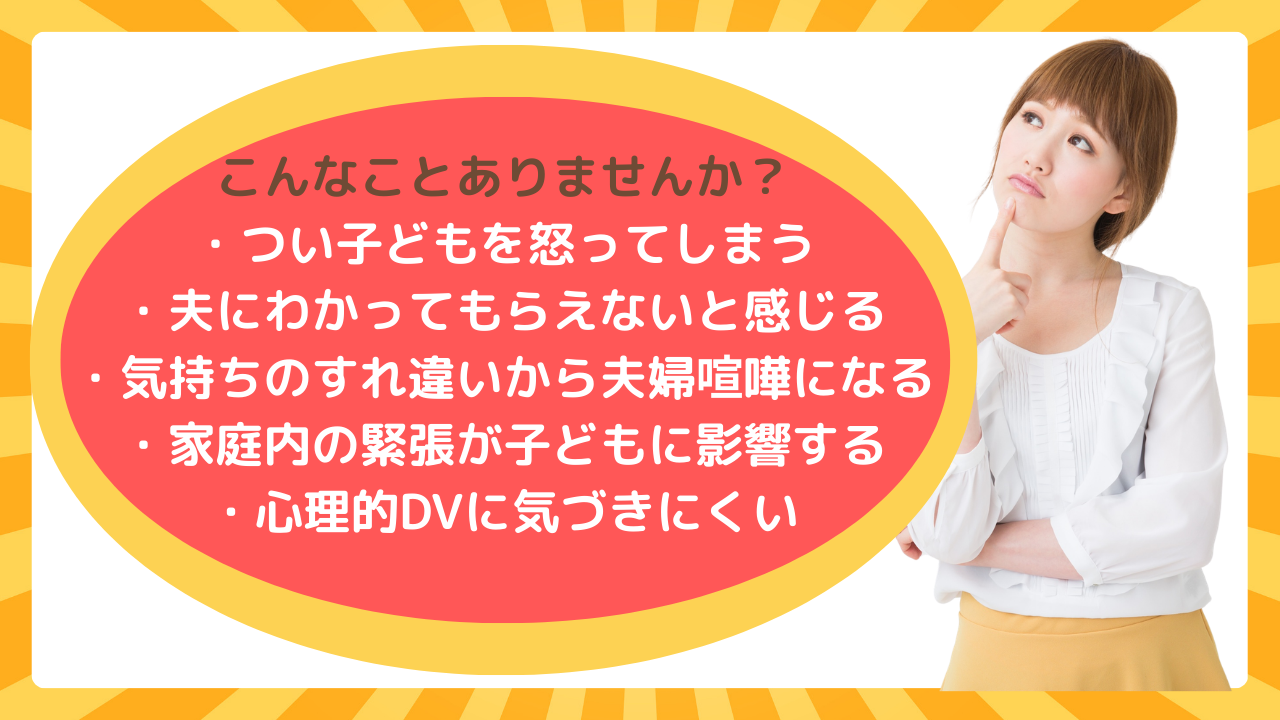 怒りの原因やすれ違いの構造を理解し、子どもへの影響にも触れながら、
